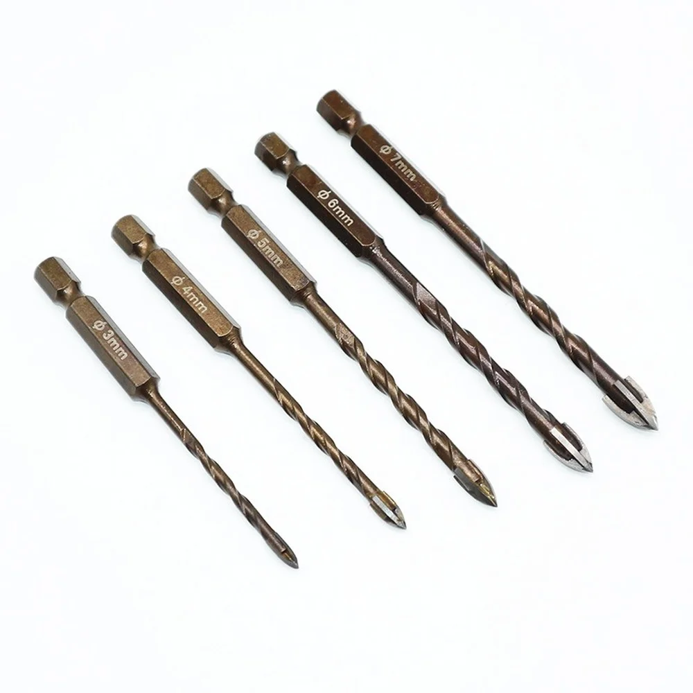 сверло по стеклу сверла по металлу сверла 1 шт. 3-12 мм крестообразное сверло, керамическое стекло, отверстие с шестигранным хвостовиком, спиральный паз, твердый сплав, четырехободковая дрель