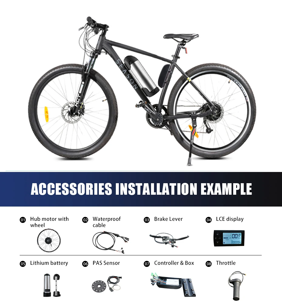 * Если клиент заказывает только варианты моторного колеса, посылка включает только мотор-колесо* Если у вас есть варианты набора заказа, этот комплект поставляется со всем, что вам нужно для преобразования вашего велосипеда в электрический велосипед, включая аккумулятор и зарядное устройство. Вот список упаковок:(1) 1 * мотор-колесо36V 500W передний/задний мотор для центрального движения колесаРазмер обода: 20 ", 24", 26 ", 27,5" 700C(28 "),29"(2) 1 * Аккумулятор для бутылкиЕ-байка 36В 10ah китайцы выпускают под брендом литиевая батарея(3) 1 * литиевая батарея (европейский стандарт)Примечание: Если вы не Европейский, мы добавим вилку для преобразования(4) 1 * Датчик скорости и датчик дисковой пластины (PAS)(5) 1 * Дисплей (светодиодный или ЖК-дисплей)(6) 1 * Водонепроницаемый основной кабель(7) 2 * выключатель тормоза или Датчик тормоза(8) 1 * дроссельная заслонка (дроссельная заслонка большого пальца или половина закрутки или закрутка дроссельной заслонки)(9) 1 * контроллер(10) 1 * блок контроллера(11) 1 * головной светильник(12) Другие аксессуары: руководство, сертификация, пластиковая кабельная стяжка