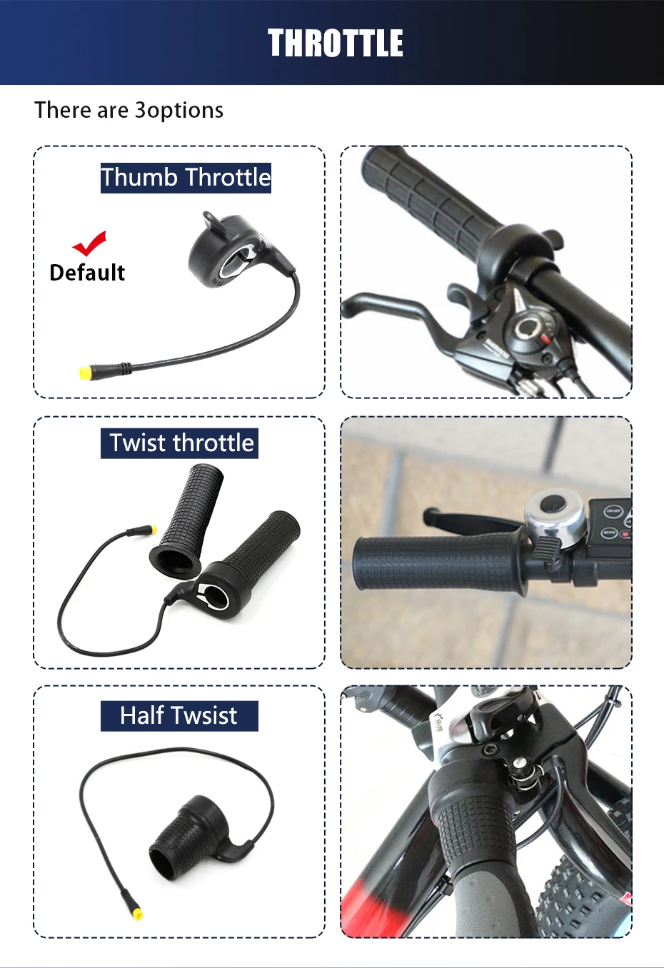 1. Дроссельная заслонка: большой палец/половина «ГАЗа»/поворот2. Тормозной Рычаг/Датчик тормозаЕсли вы не оставите нам сообщение, мы выберем для вас тормозной рычаг и дроссель большого пальца. Спасибо!* Этот задний двигатель может соответствовать 6 скоростям и 7 скоростям свободного хода, но не включает бесплатное колесо