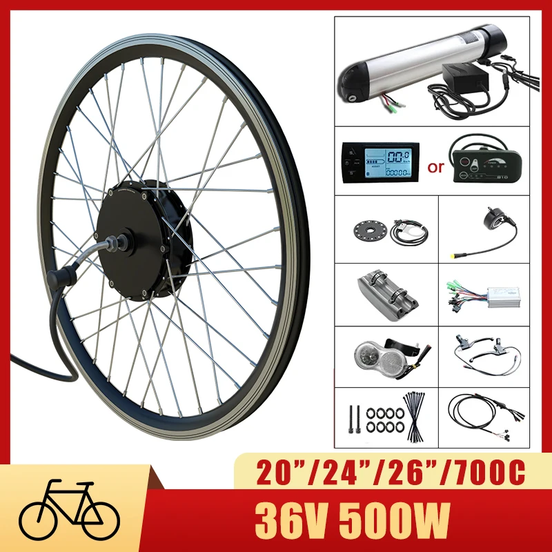 36 В, 500 Вт, фонарь, моторное колесо, ЖКсветодиодный, 10 Ач, литиевая батарея для электровелосипеда, переднее заднее Бесщеточное моторное колесо