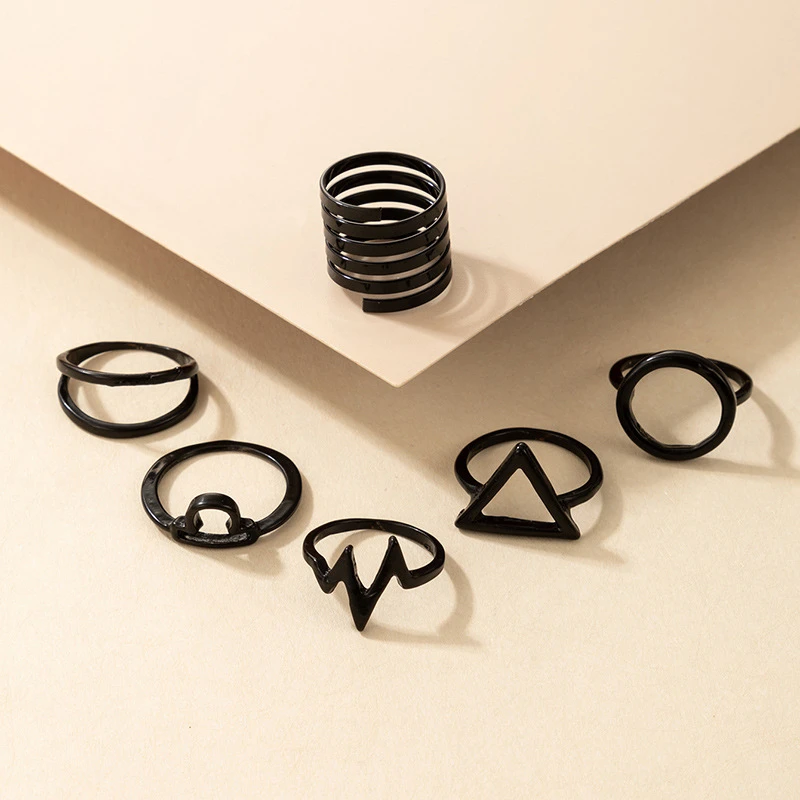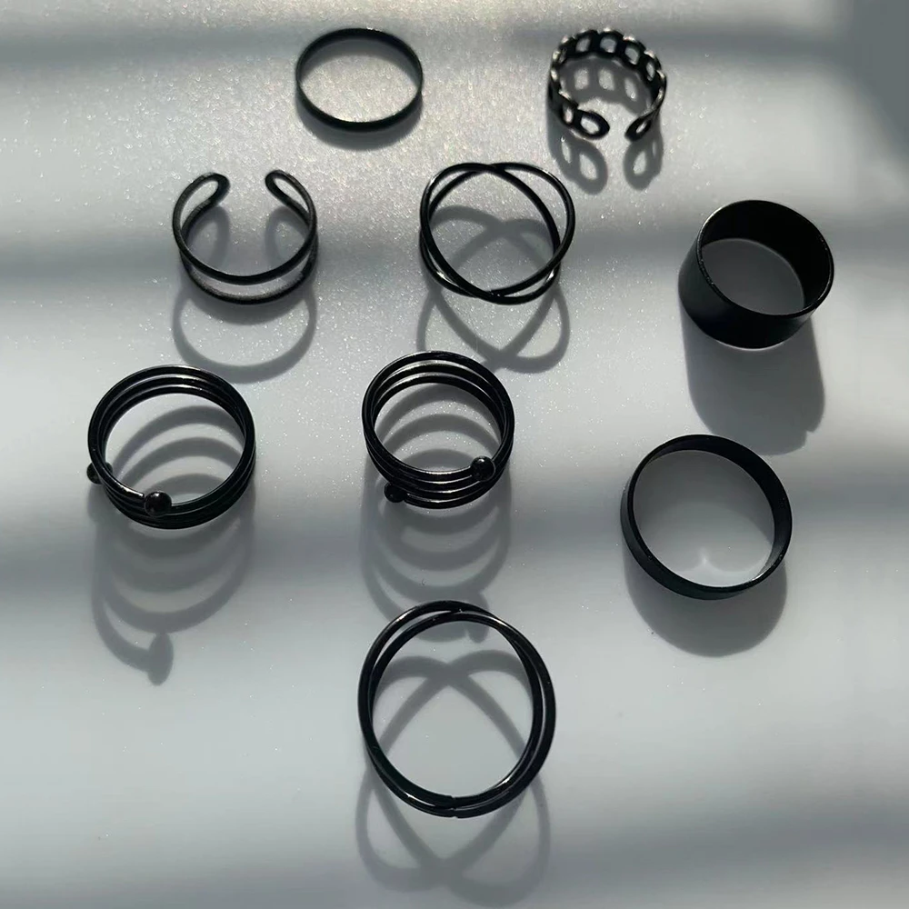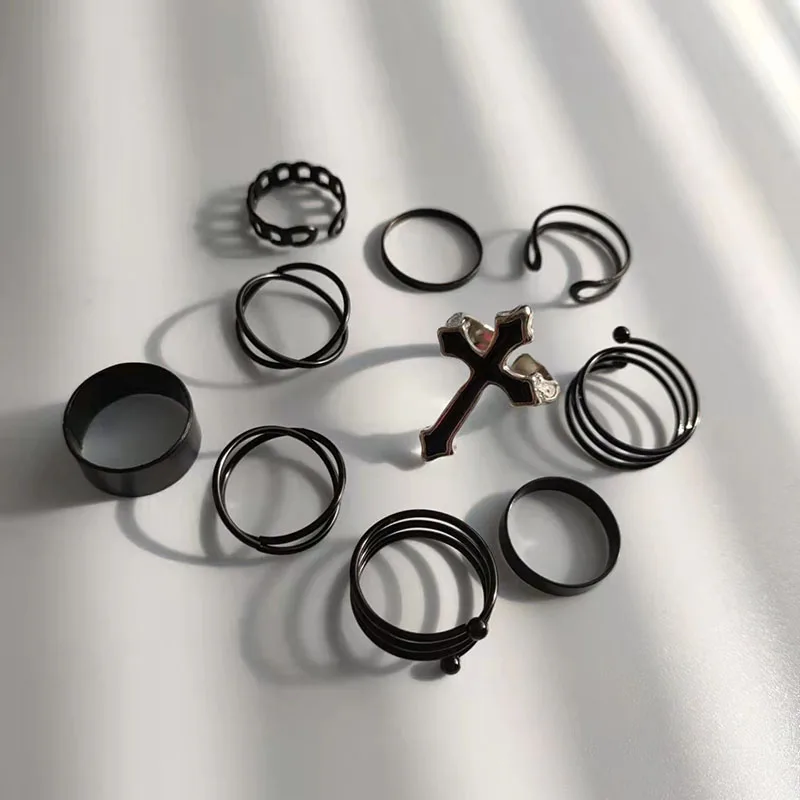 Комплект женских колец в стиле панк, Модные Винтажные простые черные кольца с перекрестной цепочкой, ювелирные украшения для вечерние
