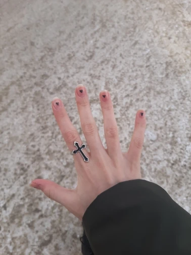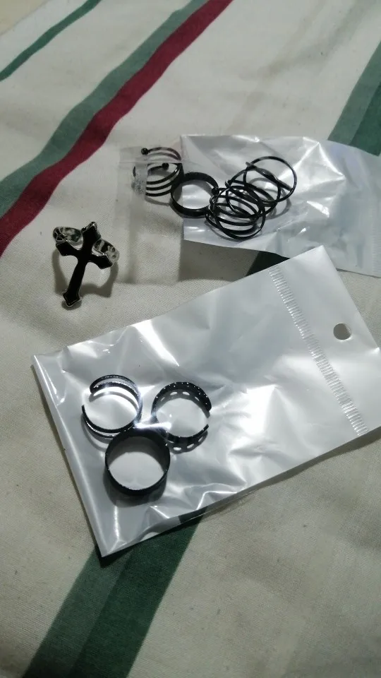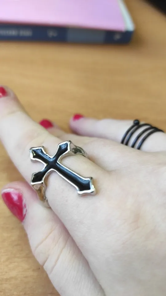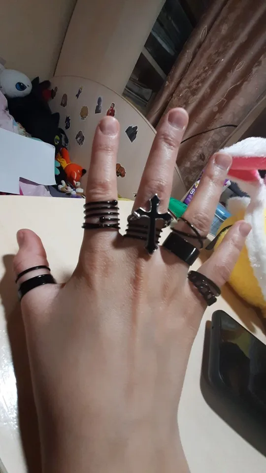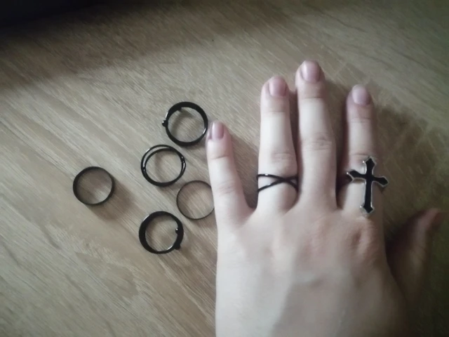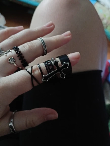 кольца красивые но тот что с крестом быстро сломался (через 2 дня) а те что чёрные просто краска облазит и они черно серые