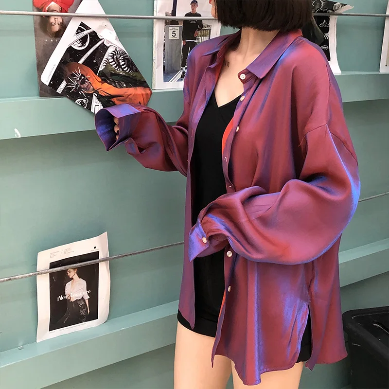 Женская атласная блузка с длинным рукавом, рубашки с блестками, винтажные офисные топы, женская модная длинная рубашка премиум-класса, blusa de mujer ins