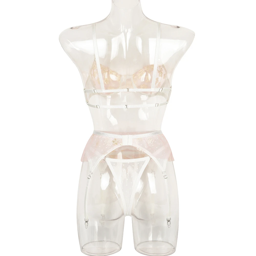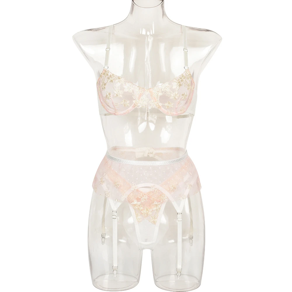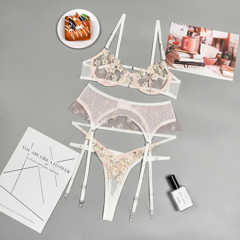 нижнее белье для сескса Эротический бюстгальтер, стринги, комплект нижнего белья, Женское прозрачное сексуальное Нижнее Белье, кружевной бюстгальтер с цветочной вышивкой, трусики, пояс, подвязки, Нижнее Белье Женское