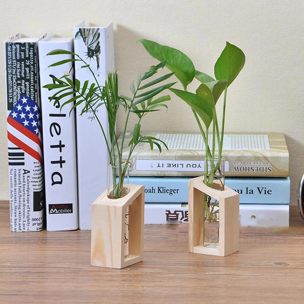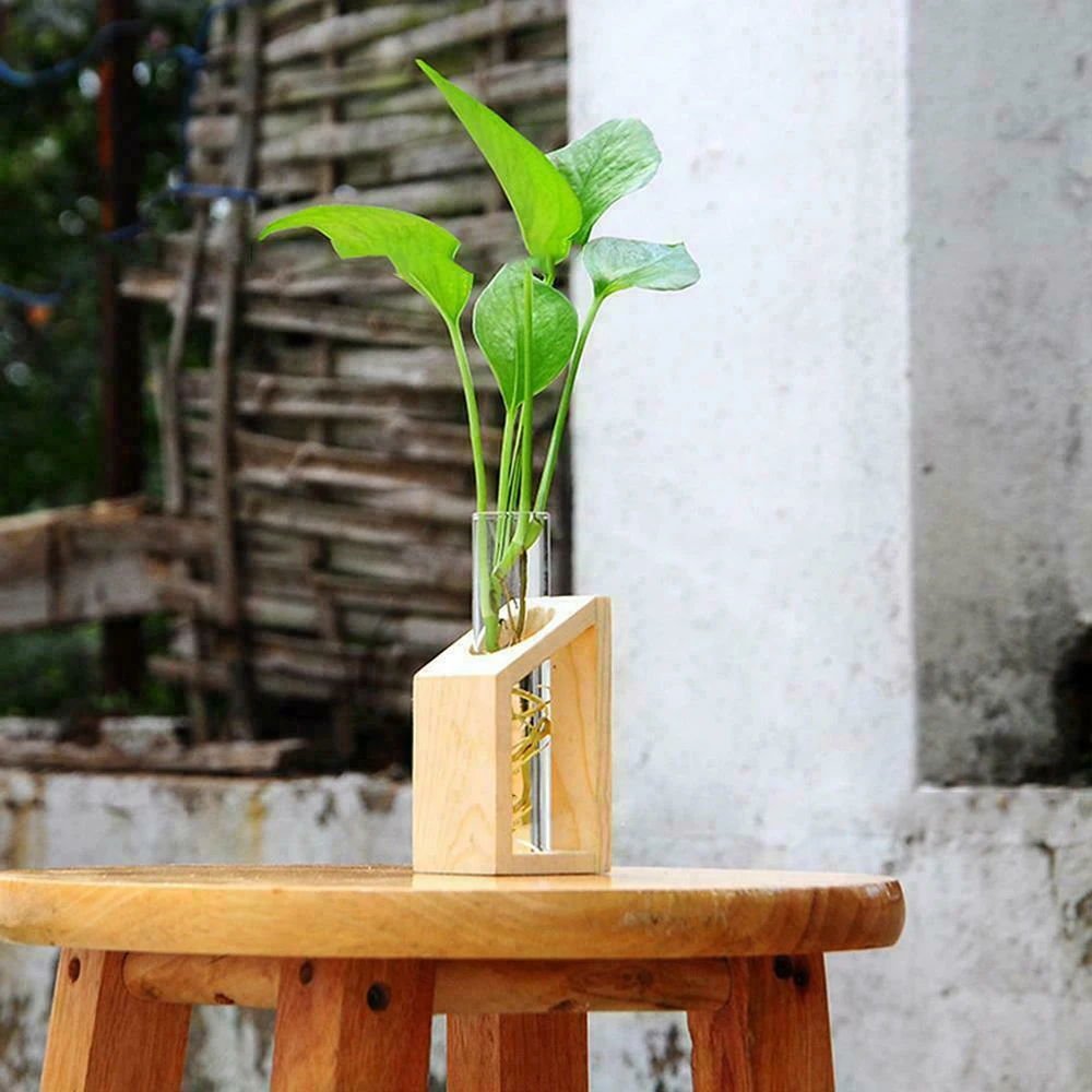 Тестовая трубка для гидропонных растений, стеклянный горшок для растений, Террариум с деревянной подставкой, стеклянный держатель, пробирка, винтажная стеклянная ваза с деревянной рамкой