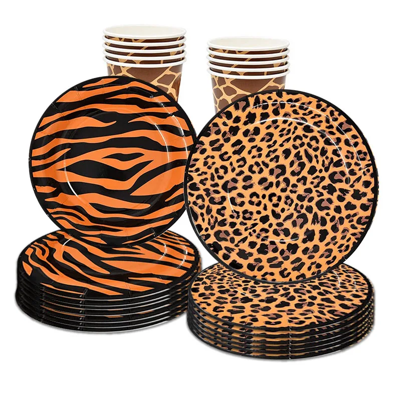 Одноразовые тарелки с изображением лесных животных чашки джунгли сафари день рождения с изображением животных тигра зебры декор для 1-го дня рождения леопардовая скатерть