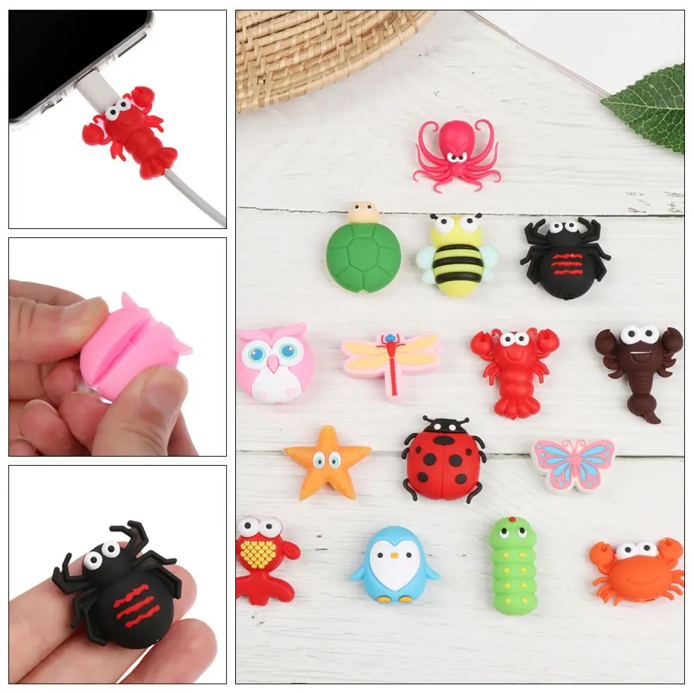 Мультяшный протектор для провода и шнура в форме насекомого, силико...