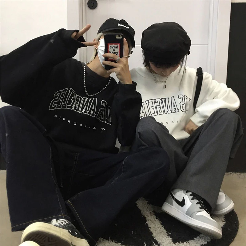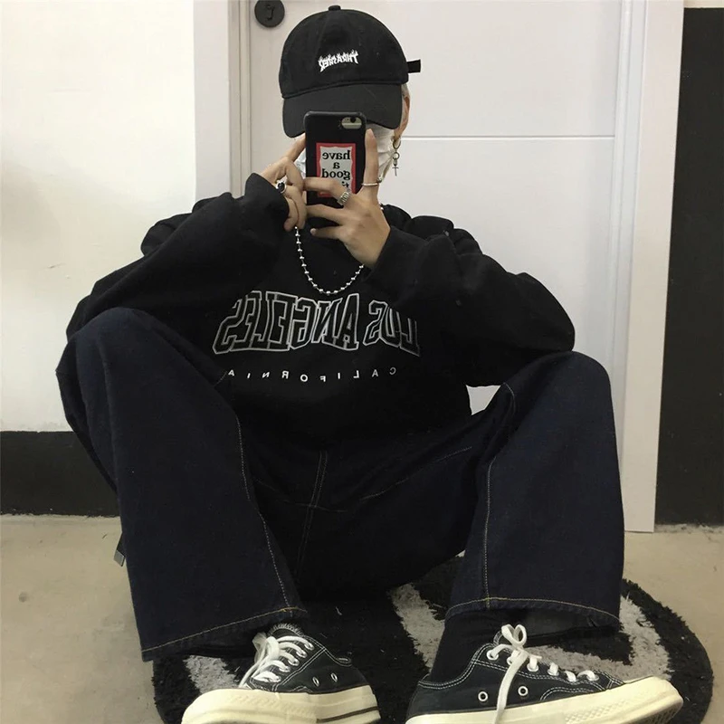 Толстовка женская с капюшоном и надписью, Свитшот в стиле Харадзюку, пуловер оверсайз с длинным рукавом, уличная одежда, свободный черный топ для пар, на весну