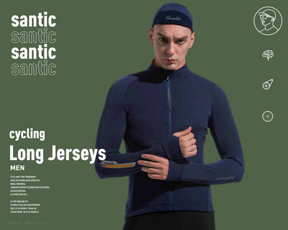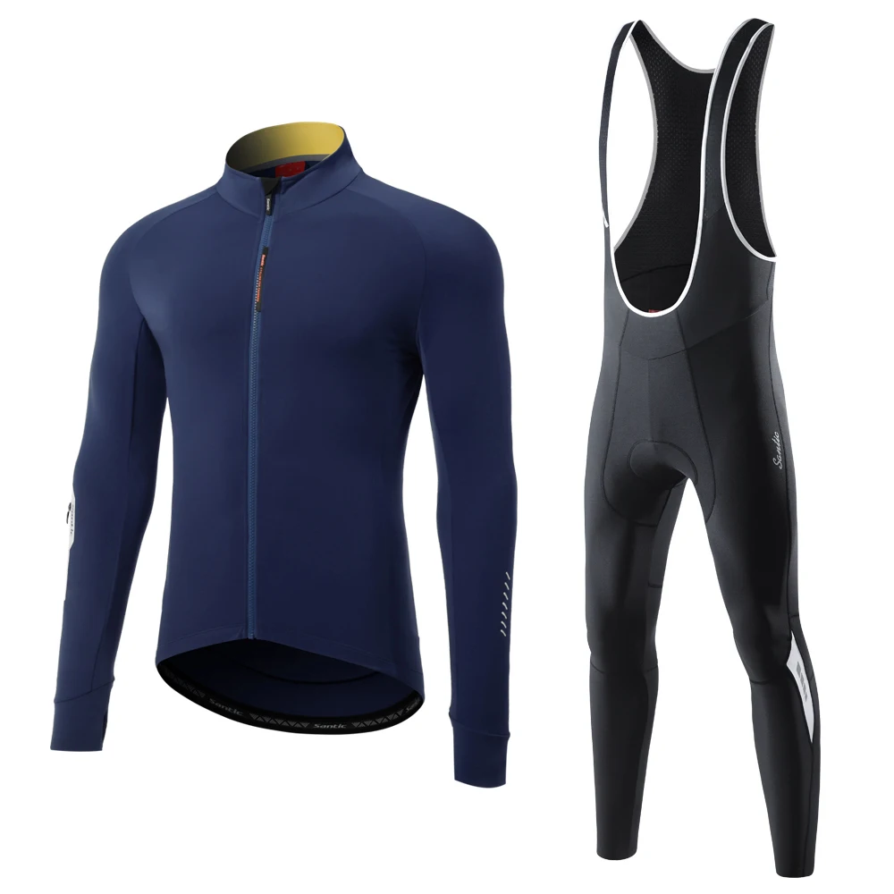 Велосипедный костюм Santic из Джерси с длинным рукавом, велосипедная рубашка, слюнявчик для горного велосипеда, зимний велосипедный ветрозащитный костюм с длинным рукавом для мужчин