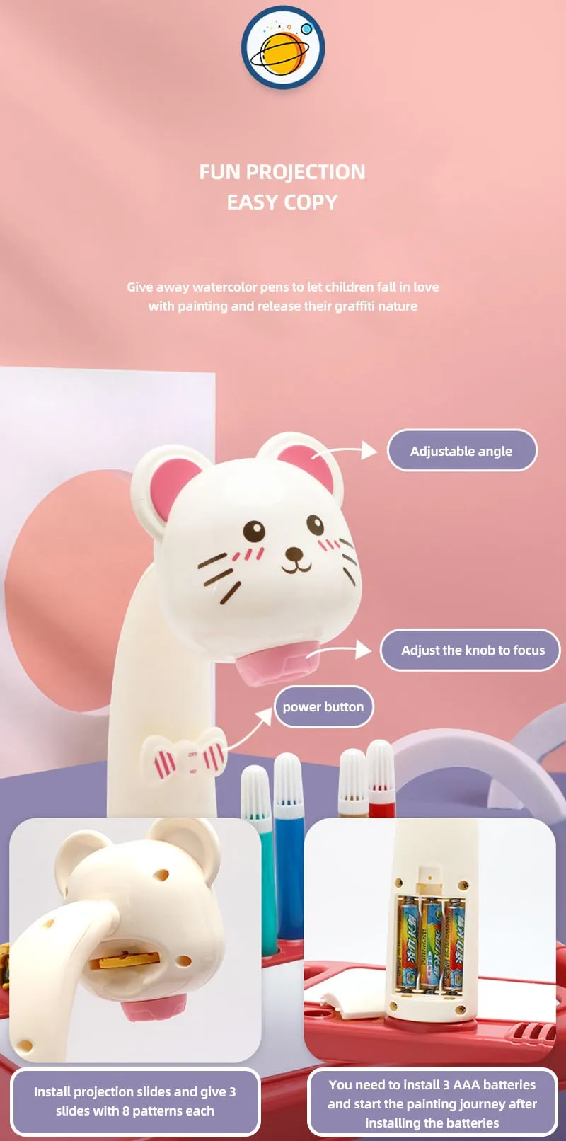 Детский светодиодный проектор, художественный стол для рисования, детская доска для рисования, стол для художественных ремесел, Обучающие инструменты для рисования, игрушка для девочек и мальчиков