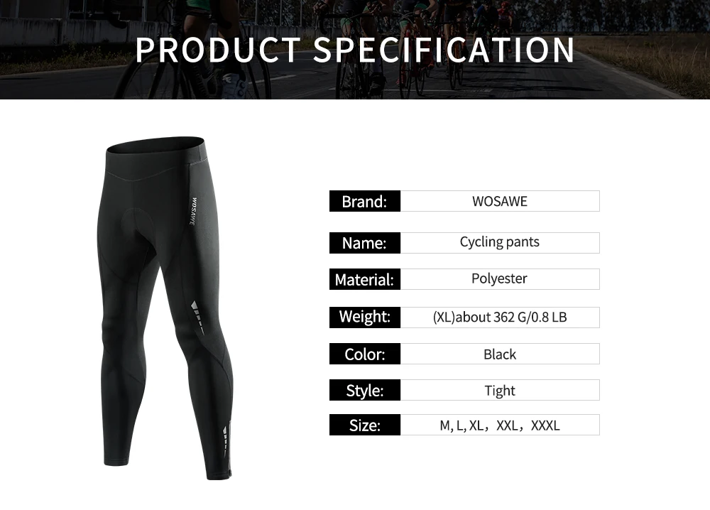 WOSAWE зимние велосипедные длинные брюки мужские 3D мягкие теплые к...