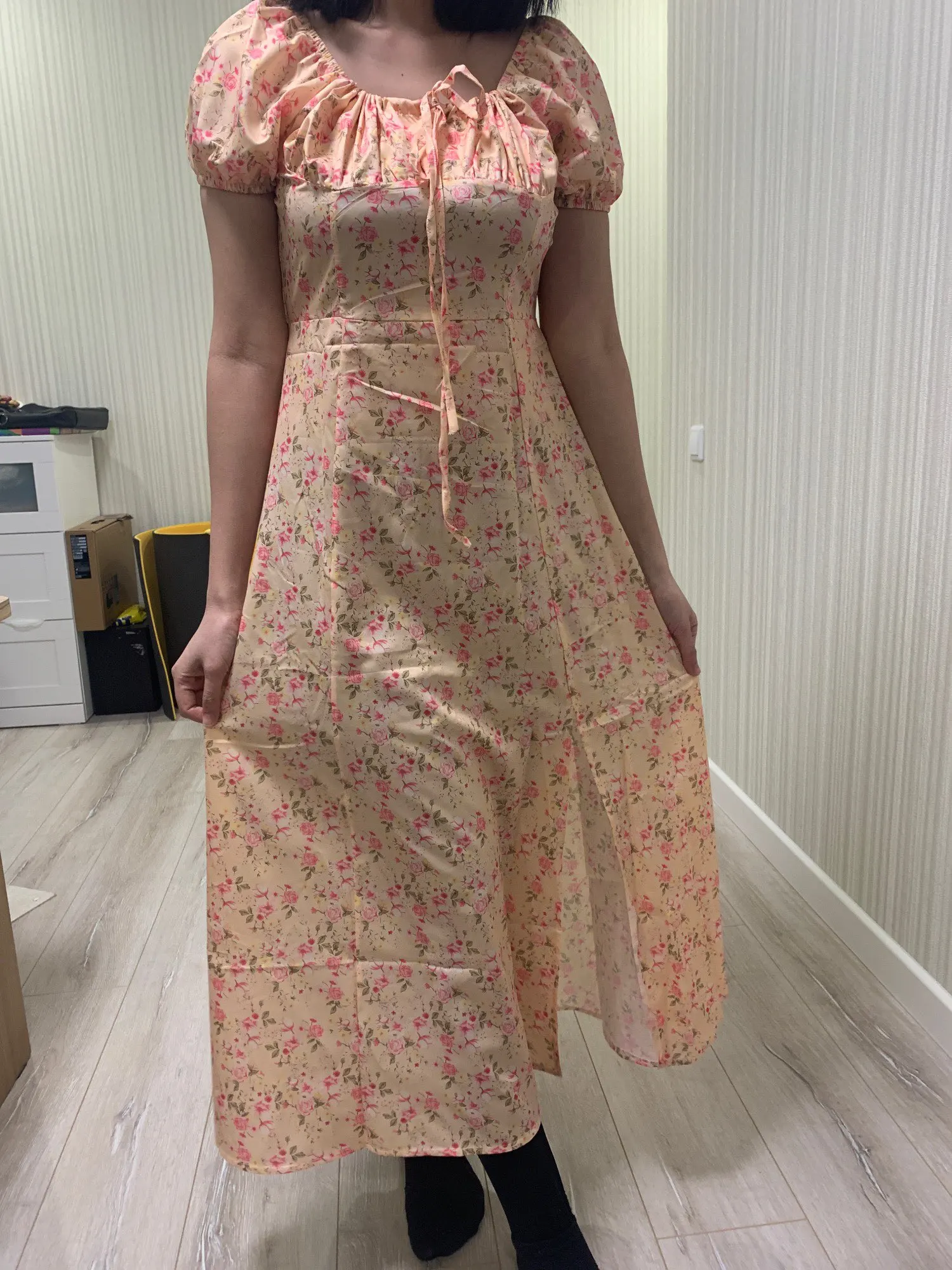 Женское Цветочное платье с буффами на рукавах, весеннее платье с вы...
