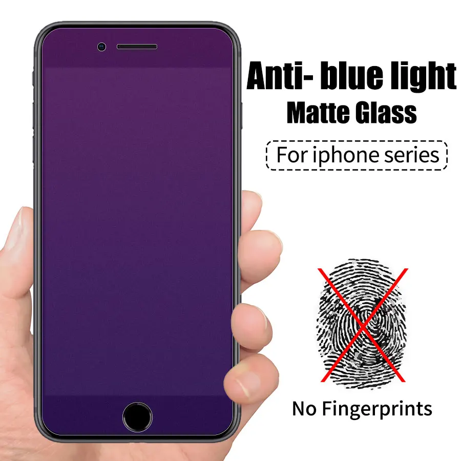 Анти УФ Фиолетовый Синий свет матовый закаленное стекло для IPhone 11 12 13 Pro XS Max XR X 8 7 6 6s Plus защита экрана стекло