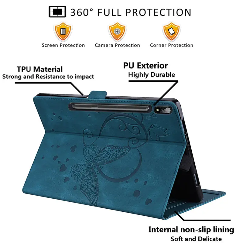 Чехол для Samsung Galaxy Tab S7 FE 12,4 "и Galaxy Tab S7 S8 Plus, чехол с объемным тиснением бабочки для Galaxy Tab S7 S8 11 дюймов