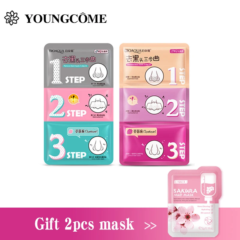 Набор для удаления черных точек BIOAQUA 3 шт.лот, сужение пор, отбеливание, увлажнение, против морщин, патчи для носа, товары для глубокой очистки