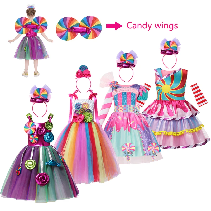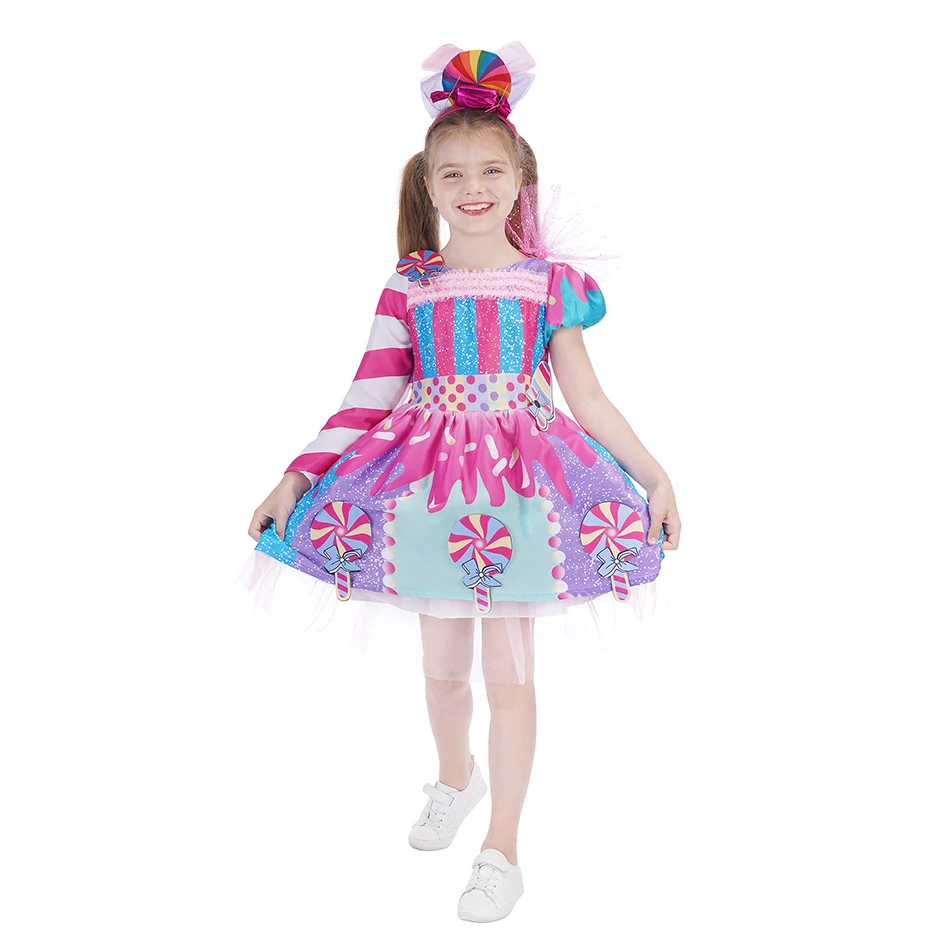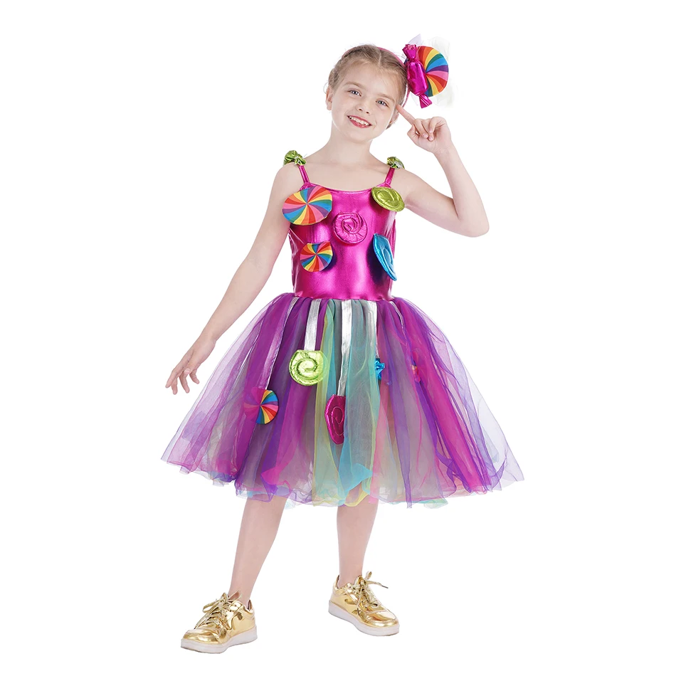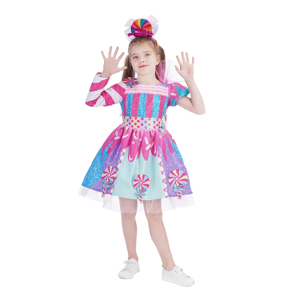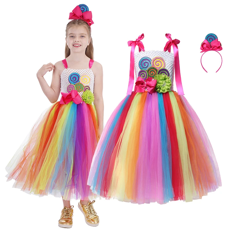 2022, платье принцессы для маленьких девочек с радужными конфетами, костюм для косплевечерние на день рождения для детей, милая детская одежда