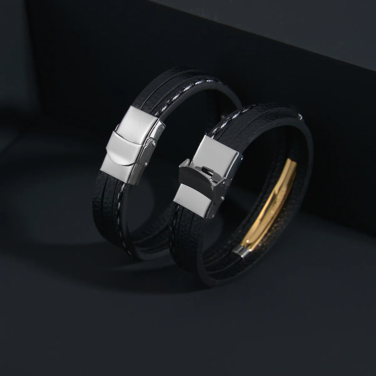 Мужские и женские браслеты из нержавеющей стали с кожаной цепочкой ...