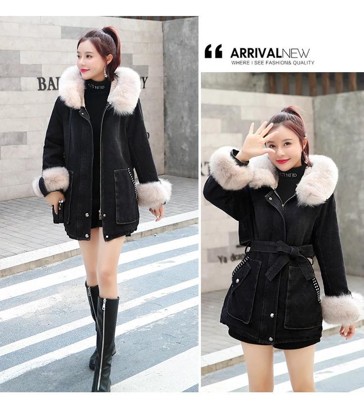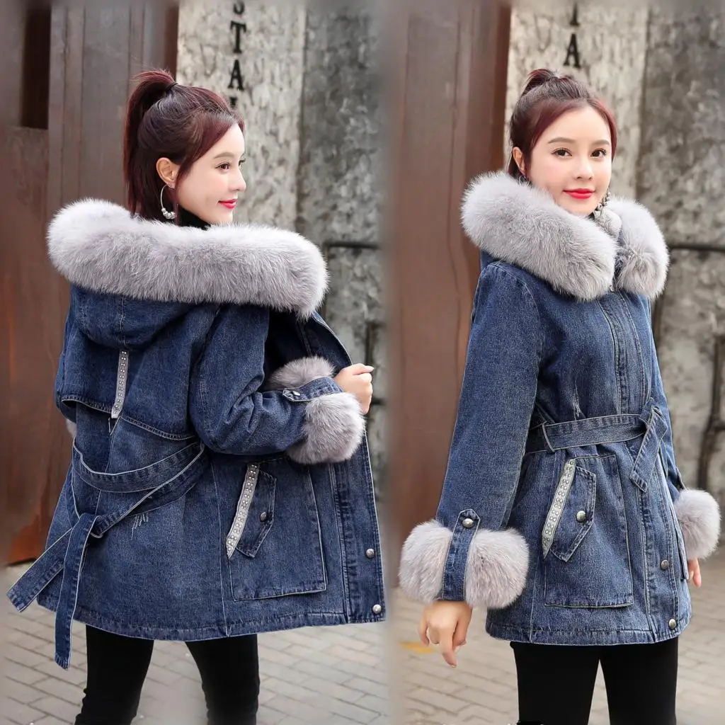 Джинсовая зимняя верхняя одежда, новинка, женские толстые парки из ...