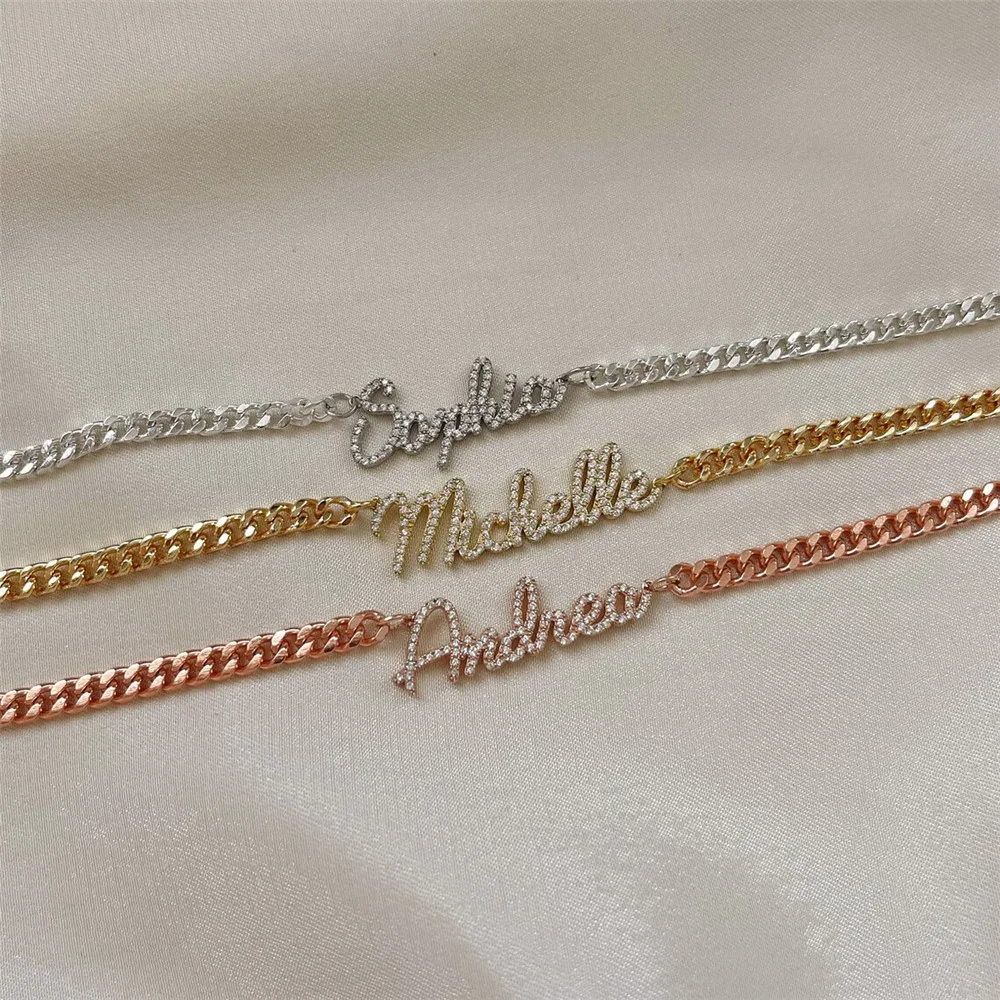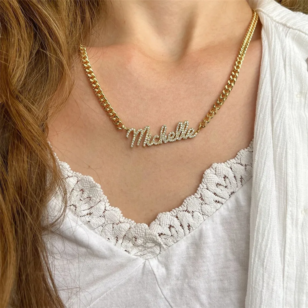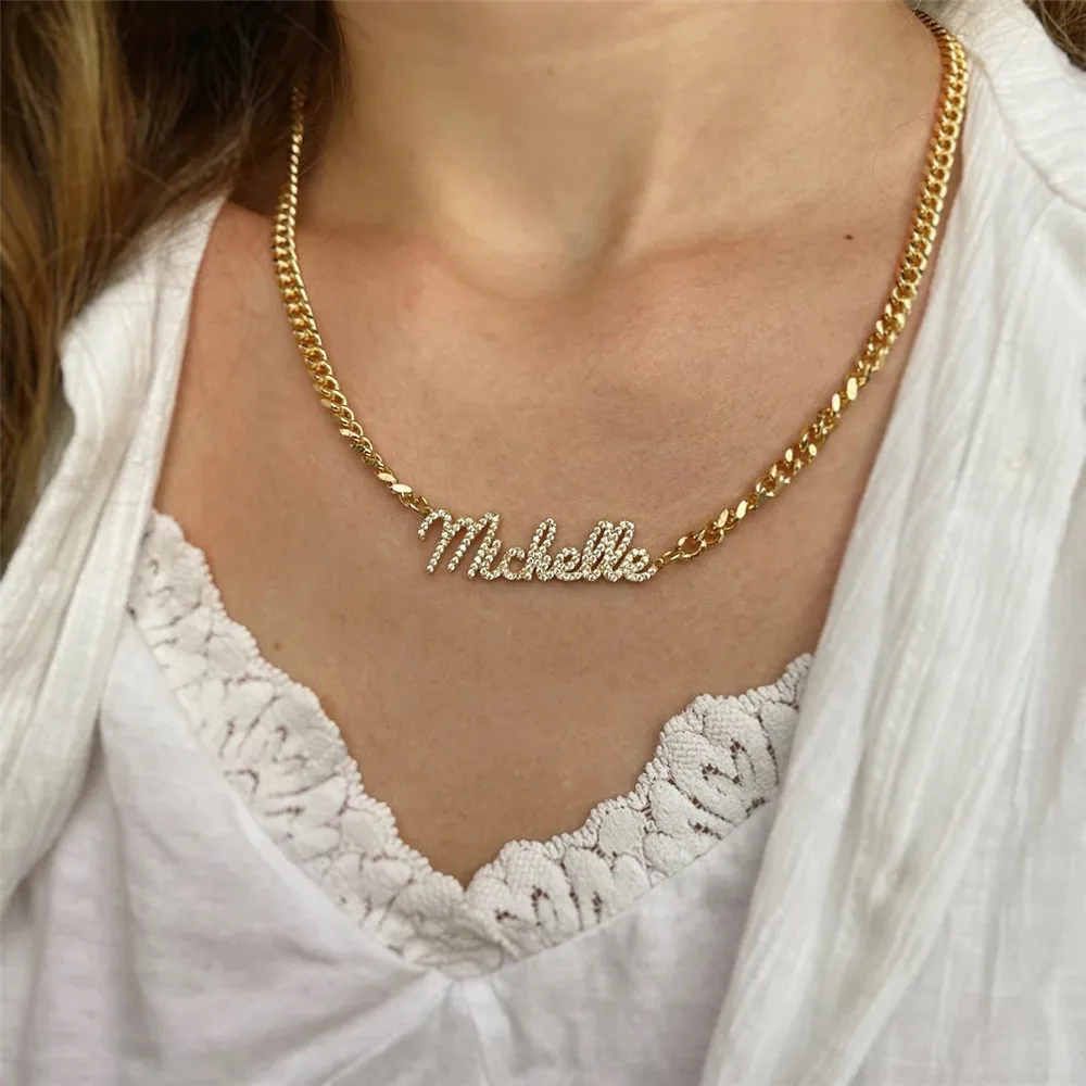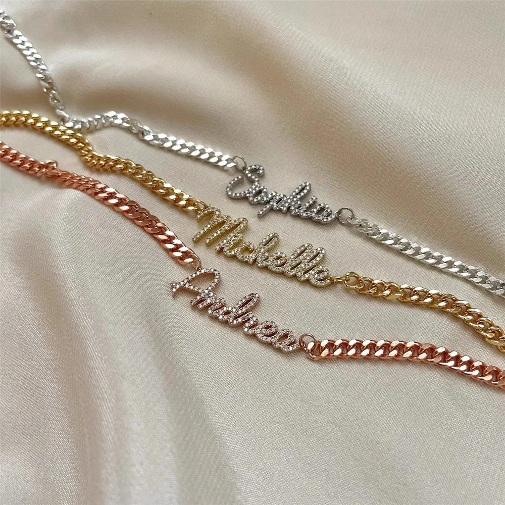 Название: Заказное именное ожерелье с бриллиантами и кубическим цирконием, именное ожерелье для женщин, персонализированное кубинское ожерелье с цепочкой, рождественские подарки