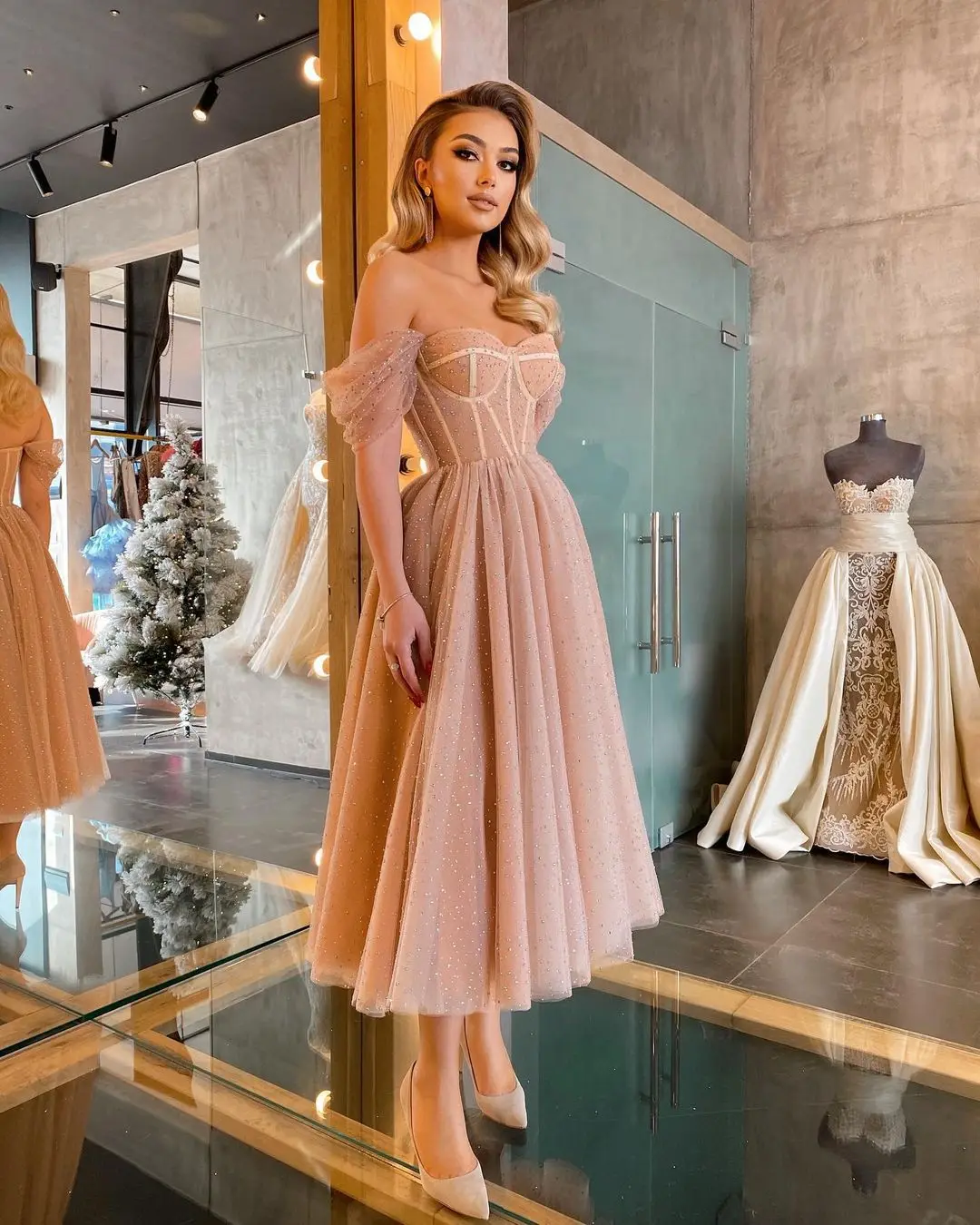 Строгие Вечерние платья из тюля, корсет с открытыми плечами, коротк...