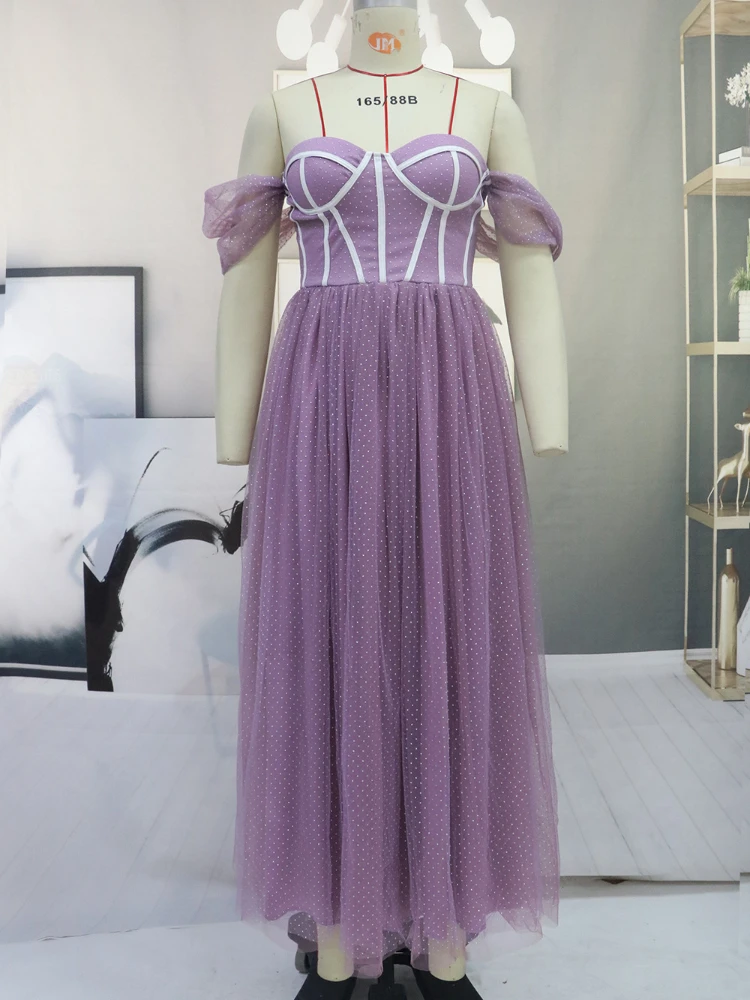 Сексуальное Тюлевое платье с открытыми плечами в горошек, лето 2021...