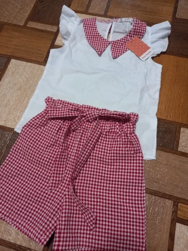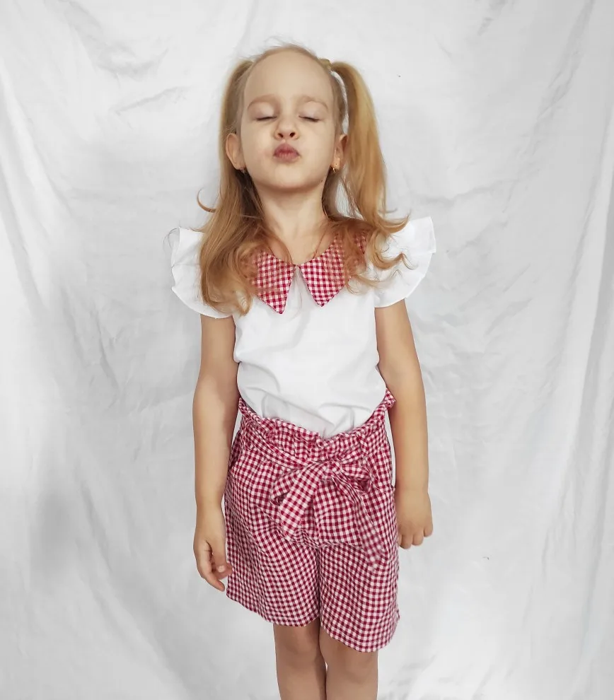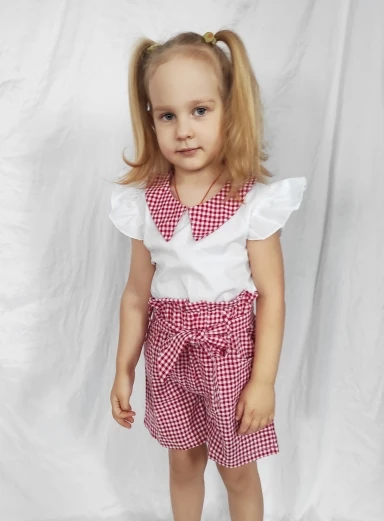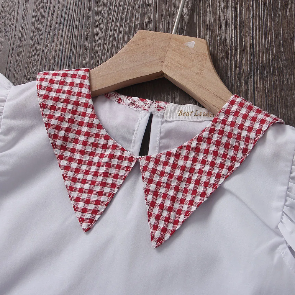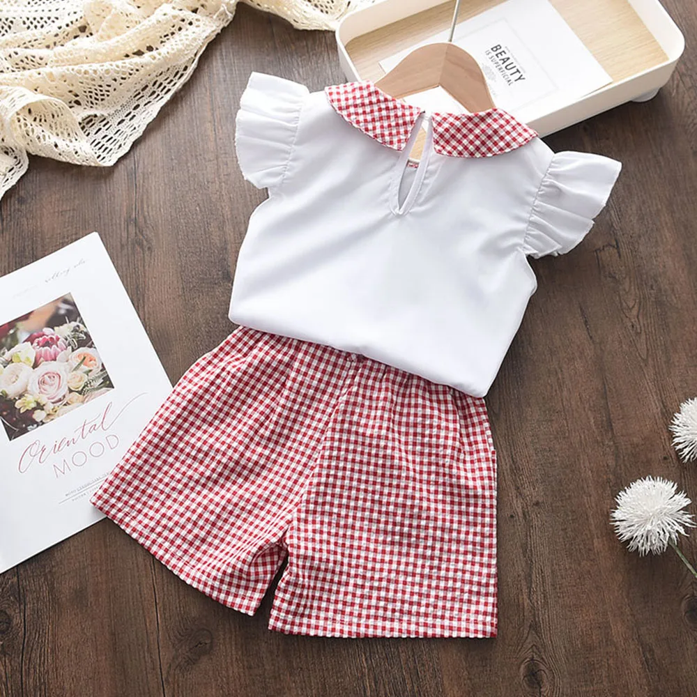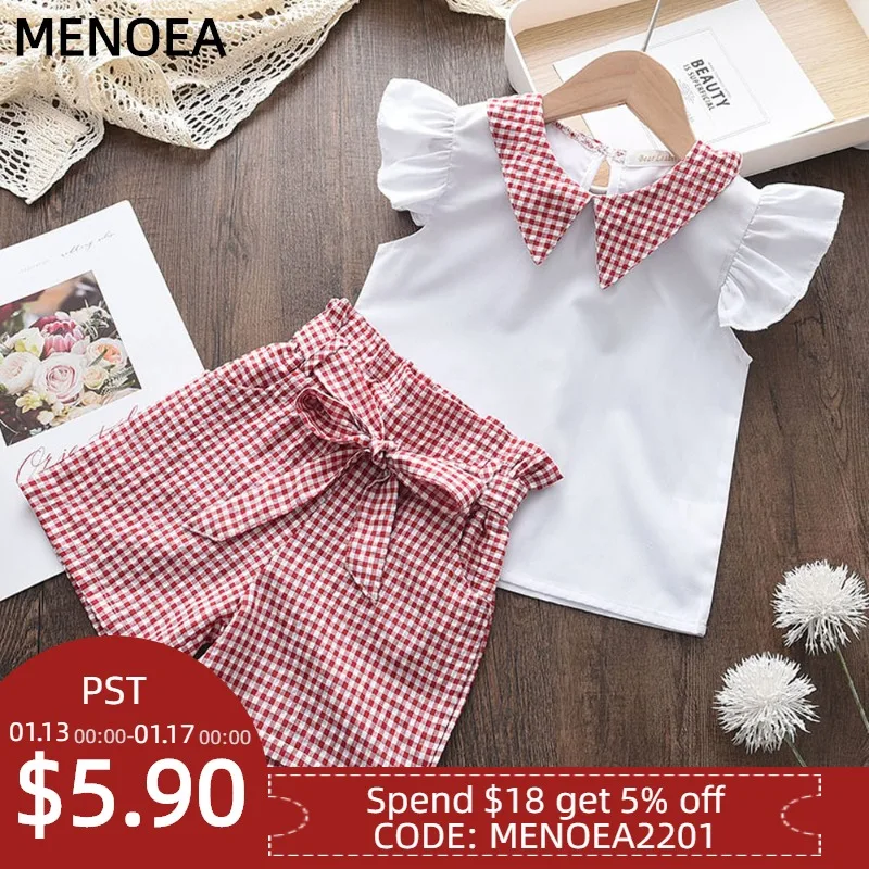 Menoeaкомплекты одежды для маленьких девочек Новинка 2022 года; Модные Лоскутные футболки + клетчатые шорты с бантом Повседневная одежда Комплекты одежды для маленьких детей