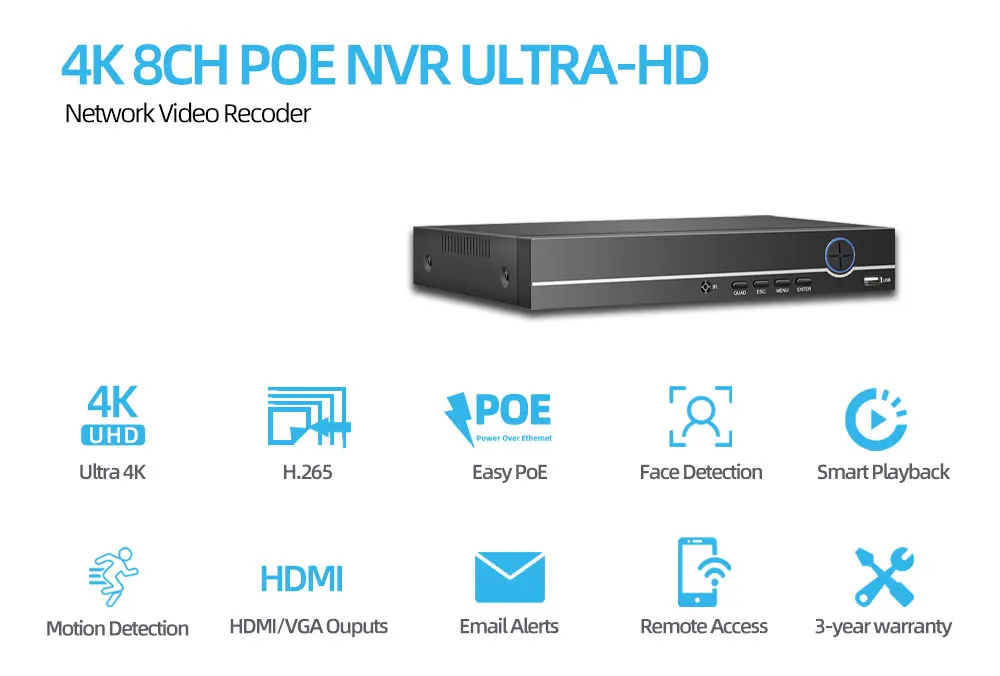 8CH POE NVR ResolutionH.265 8CH 4K NVR