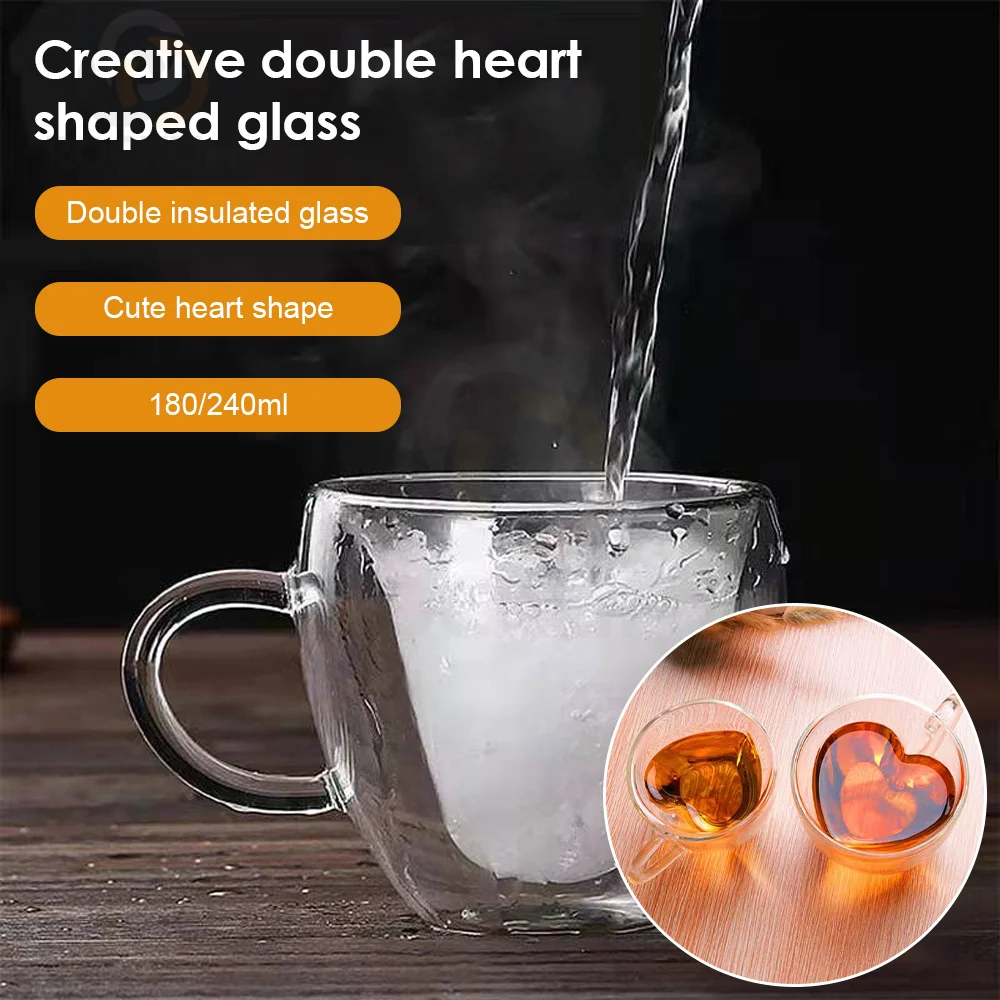 1. Двухслойное изолированное стекло, каждая чашка имеет симпатичную форму сердца, которая может держать 180/240 мл.