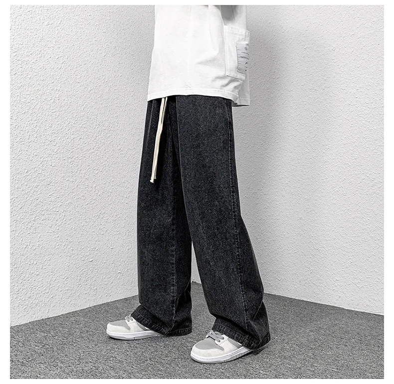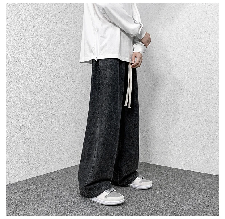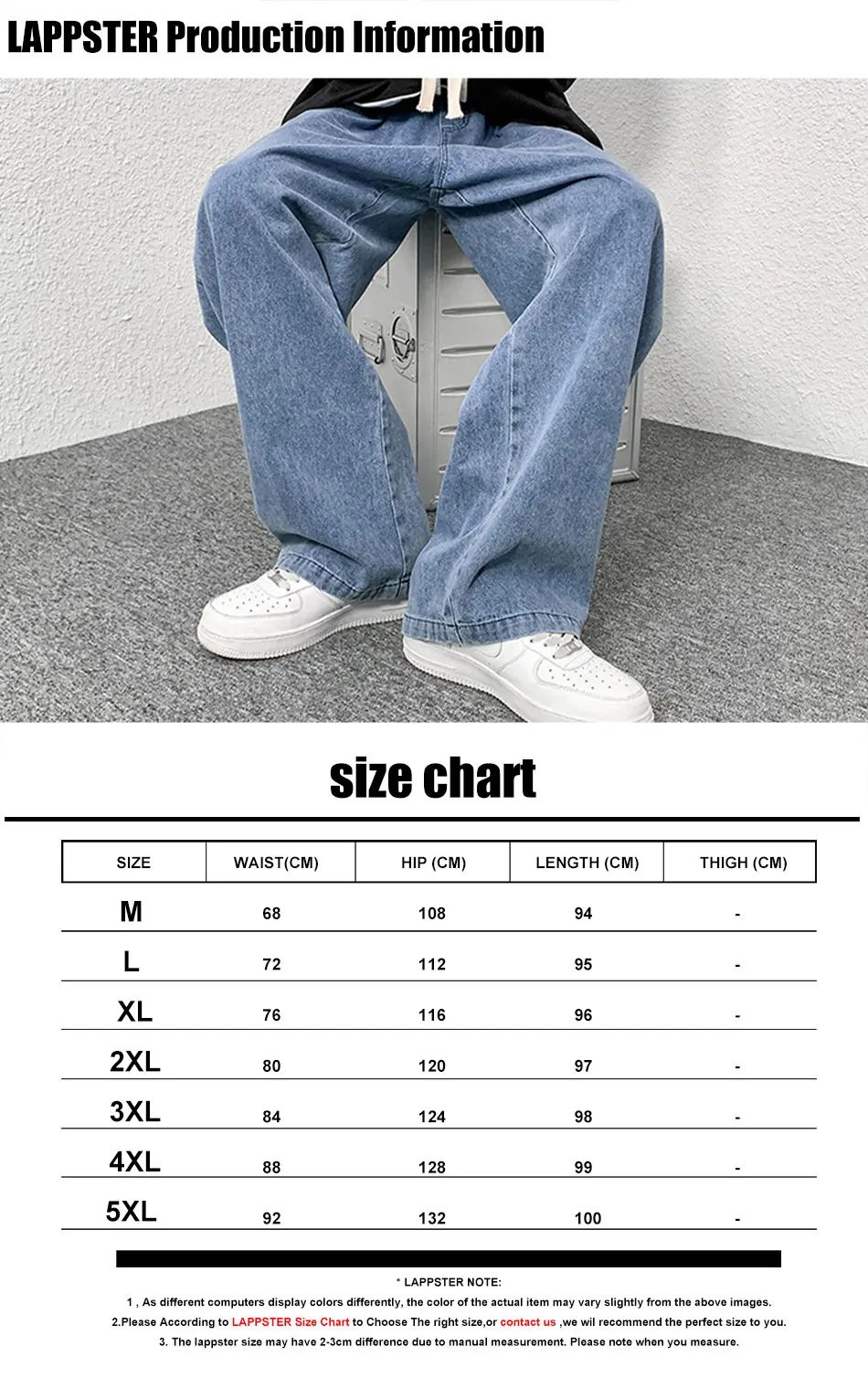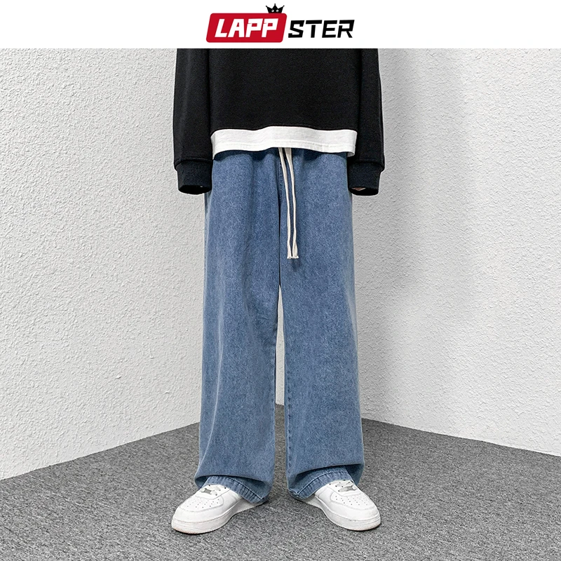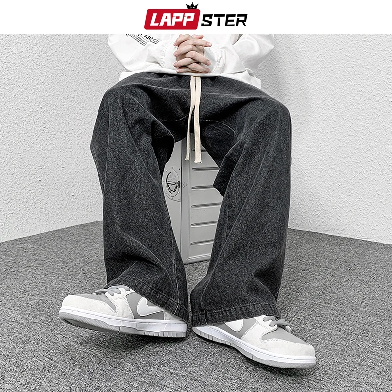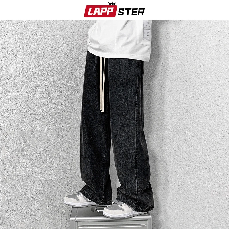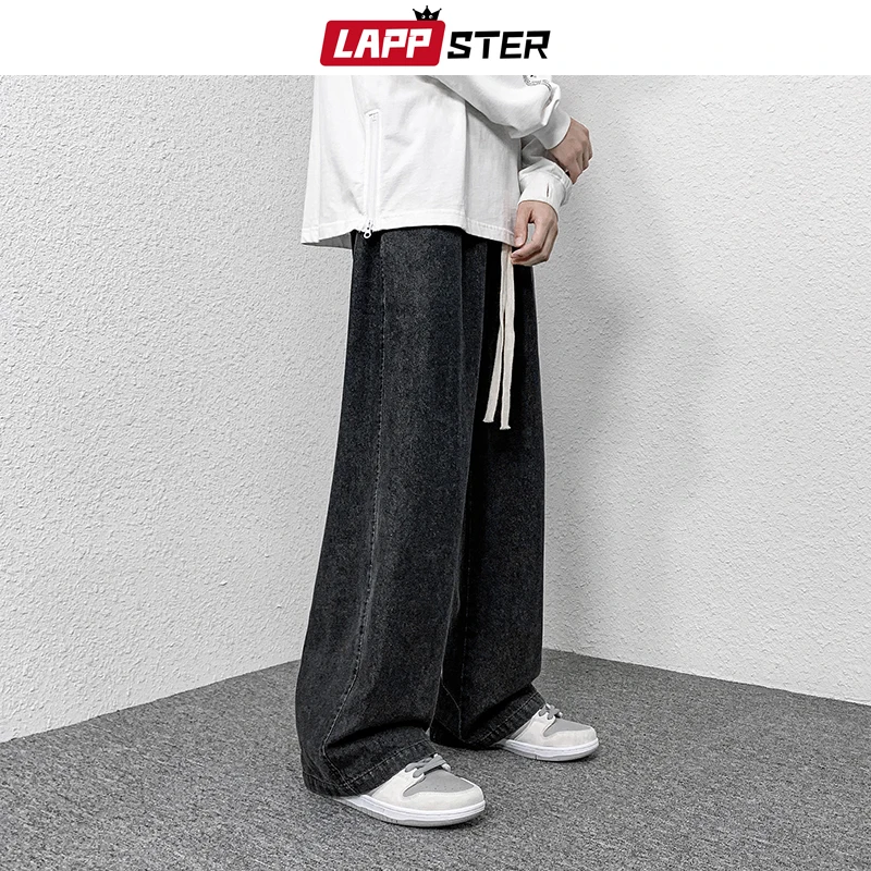 Мужские джинсовые брюки LAPPSTER в стиле Харадзюку с широкими штанинами 2022, мужские мешковатые джинсовые брюки, мужские прямые черные брюки для бега