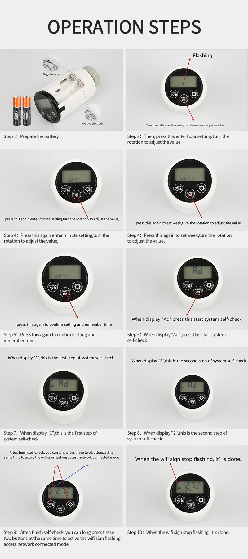 1.Термостат радиатора Smart Tuya ZigBee: Термостат радиатора сЦифровой ЖК-дисплейЭкран с простой новой ручкой для простых настроек. Он разработан с двумя секциямиБатарейки АА, Который является специальным клапаном, использующим совместно с нагревательным радиатором для энергосберегающих. Искусственно устанавливаемая температура в помещении, в основном используется в системе напольного отопления для контроля закрытия и открытия трубы.