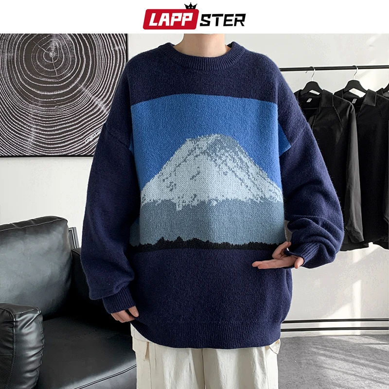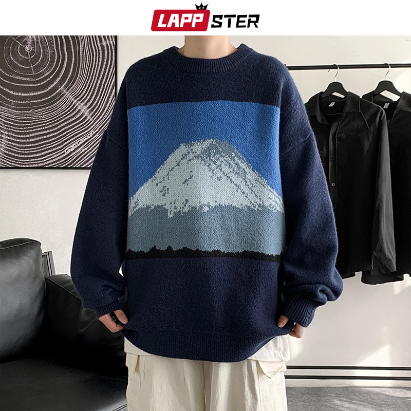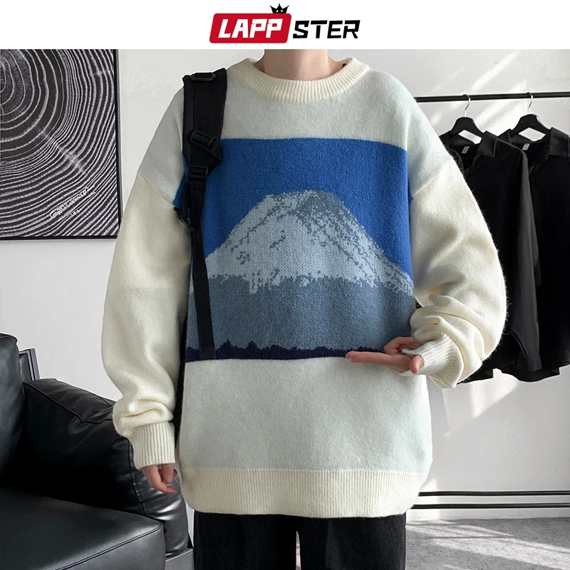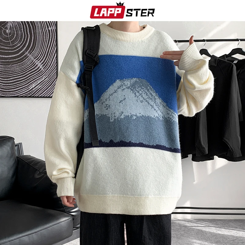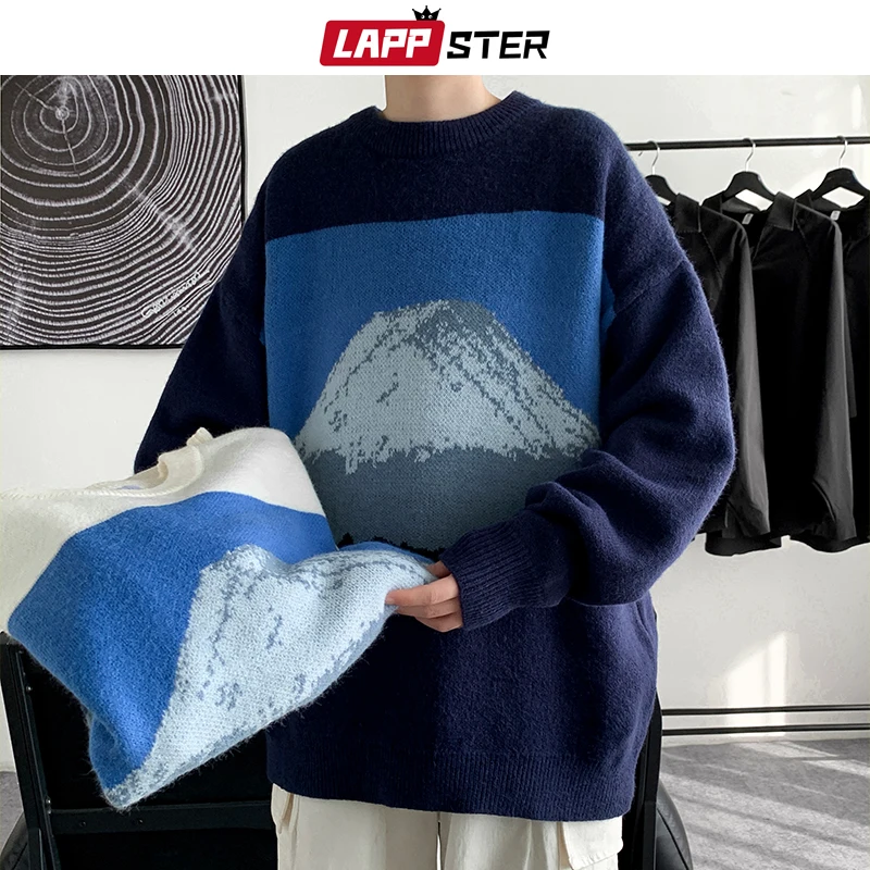 Свитер LAPPSTER мужской в стиле Харадзюку, свитер с изображением Снежной Горы, 2022, модные пуловеры оверсайз в Корейском стиле, Мужской винтажный вязаный свитер, одежда