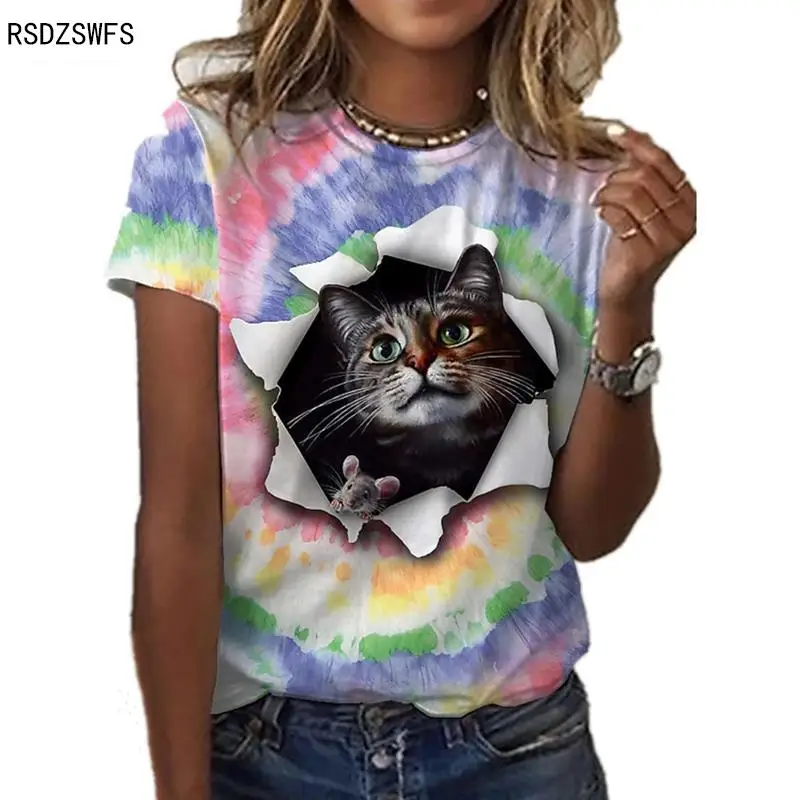 Новая летняя женская музыкальная футболка унисекс, забавная футболка, Повседневная футболка с 3d рисунком кота, топ с круглым вырезом и коротким рукавом, женская модель 2021