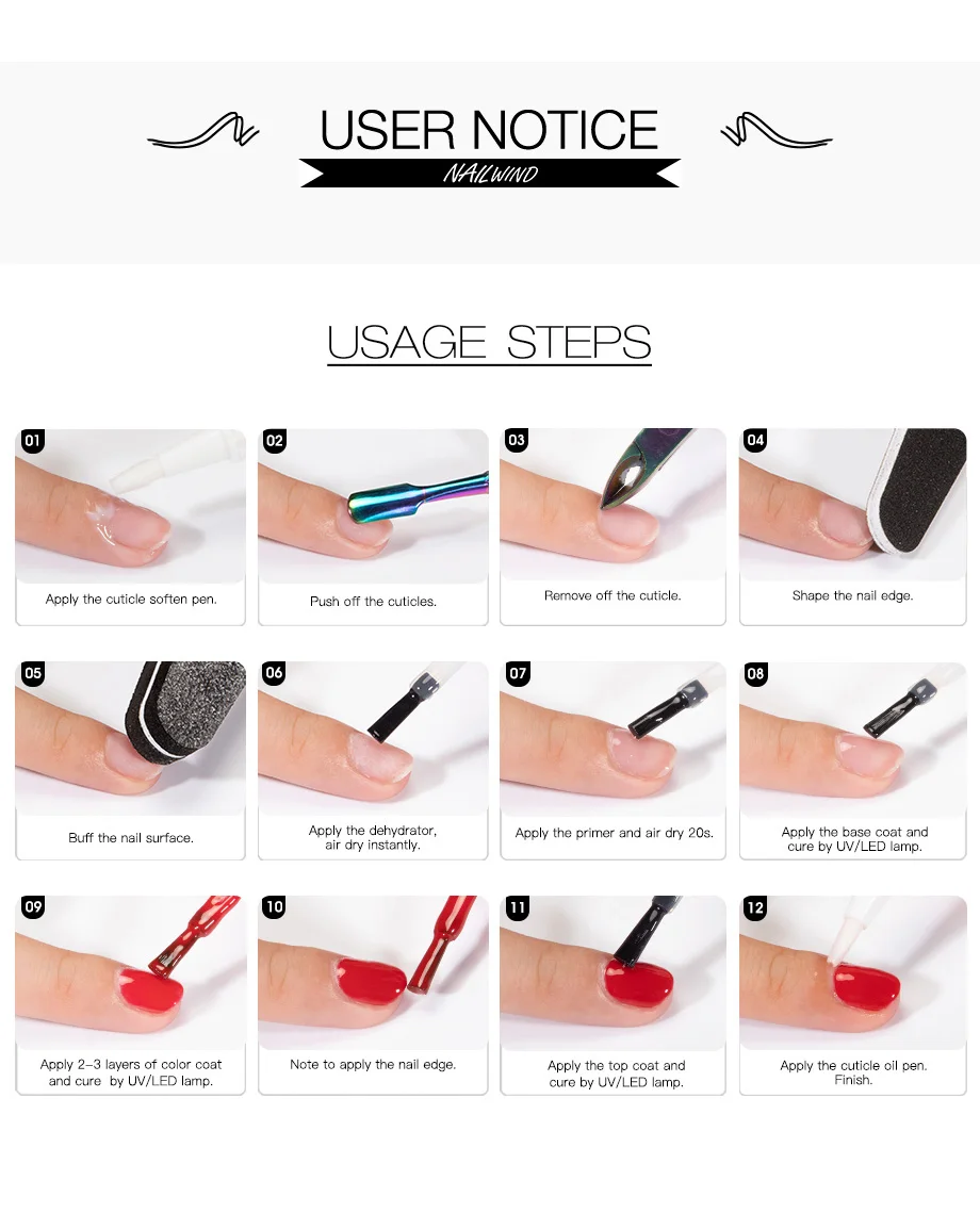 Характеристики Товара:Бренд: NAILWINDНазвание: Гель-лакОбъем: 8 млЦвет: 100 цветов sСертификация: MSDS, SGS,CEИзлеченная: УФ/Светодиодная лампаПеро:1. Различные цвета2. Длительный срок службы3. Легко наносится4. Натуральная смолаШаг за шагом:1. Нанесите мягкую ручку для кутикулы.2. Отодвиньте кутикулы.3. Снимите кутикулы.4. Форма края ногтя.5. Забивает поверхность ногтя.6. Нанесите Дегидратор, мгновенно высушите на воздухе.7. Нанесите грунтовку и сушите на воздухе 20s.8. Нанесите базовый слой и закрепите УФ/светодиодной лампой.9. Нанесите 2-3 слоя цветного покрытия и закрепите УФ/светодиодной лампой.10. Обратите внимание на нанесение края ногтя.11. Нанесите верхнее покрытие и закрепите УФ/светодиодной лампой.12. Нанесите масляную ручку для кутикулы. Закончите.Внимание:1. Объем составляет 8 мл. Поскольку емкость бутылки составляет более 8 мл, гель для ногтей не будет полностью заполнен бутылкой!2. Плотно закрываются. Держите подальше от солнечного света. Хранить в недоступном для детей месте.3. Новая и старая упаковка будет отправлена случайным образом.