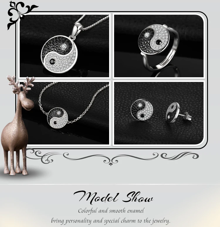 √ Высокое качество AAA TAI CHI YIN YANG Подвеска из стерлингового серебра 925 пробы ожерелье кольцо серьги комплект ювелирных изделий: комплект ювелирных изделий Изготовлен из твердого стерлингового серебра S925, известный среди владельцев ювелирных изделий своей прочностью, яркостью, И блеск. Стерлинговое Серебро в нашем уникальном ювелирном наборе tai chi является тусклым и не оставляет следов на коже. Родиевое покрытие обеспечивает длительный блеск и делает anillos de plata 925 женщин тускнеустойчивыми! Полностью гипоаллергенный, без аллергии, без никеля, без свинца и без кадмия для предотвращения раздражения.