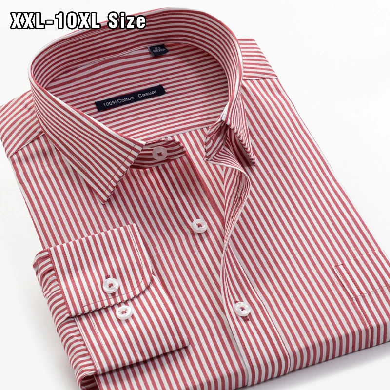 Рубашка мужская с длинным рукавом, хлопок, свободная деловая офисная Повседневная в полоску, классическая одежда, розовый цвет, 8XL9XL10XL