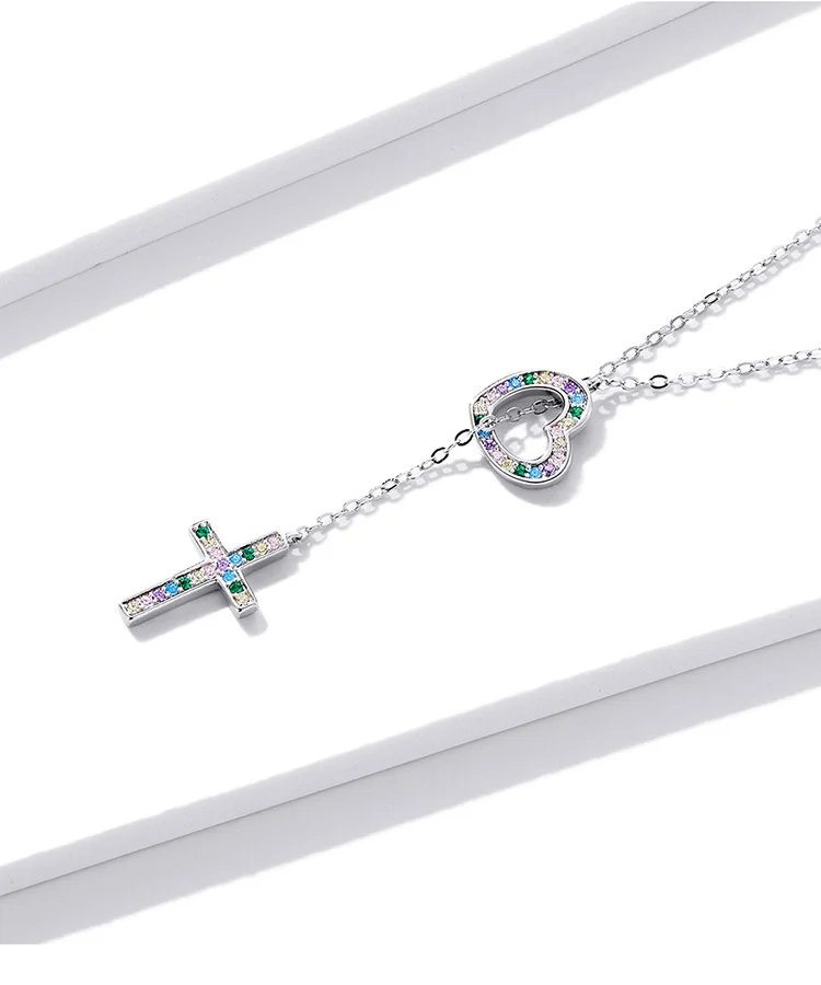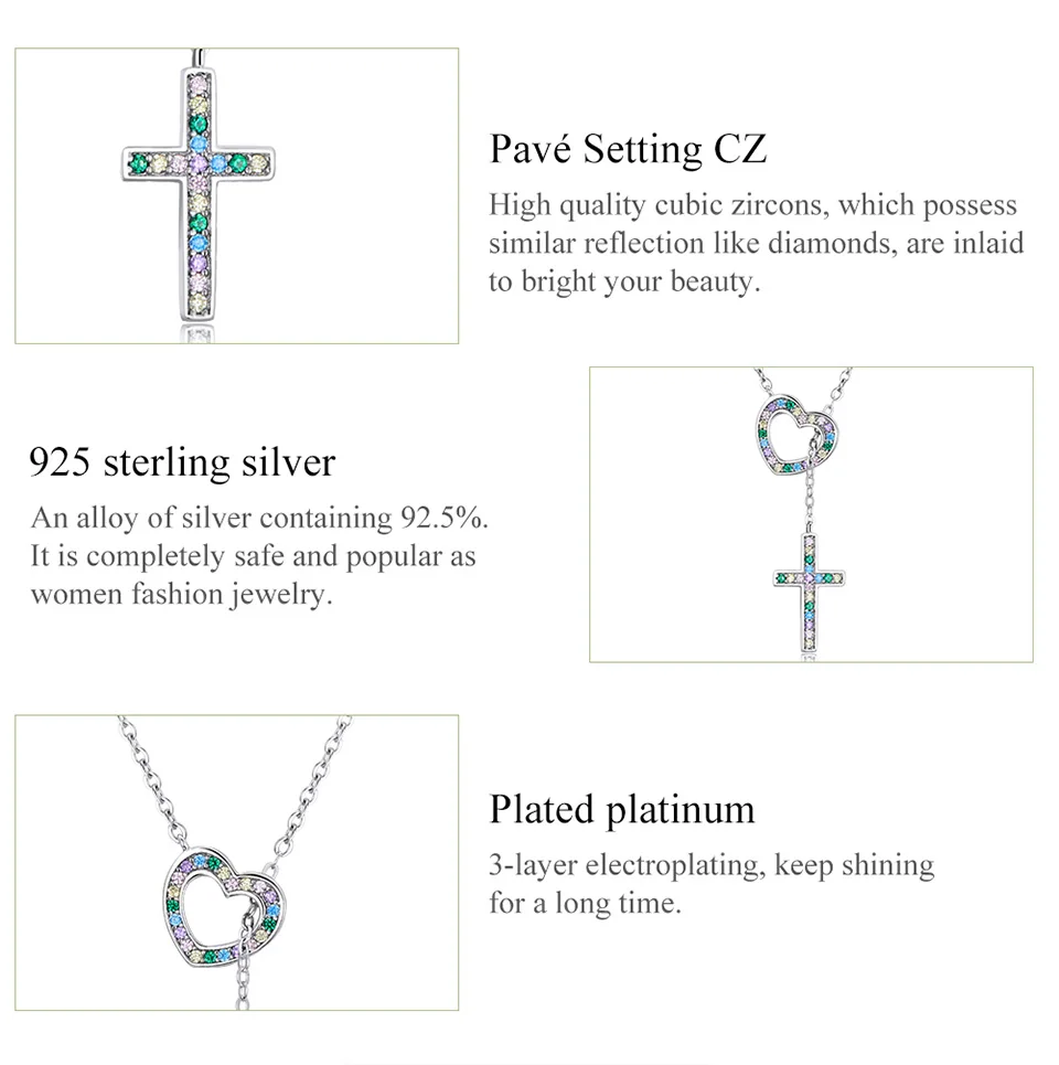 ❤[Описание] ожерелье с платиновым покрытием имеет полые цветные циркониевые сердца и крест кулон с цветным цирконием паве ниже. Он изысканный и уникальный; Y-образный дизайн цепочки придает модный вид.❤[Параметры] Длина: 42,5 см (регулируемая), размеры: любовь: 1,0*1,0 см, крест: 1,6*0,9 см; Вес: 2,3 г.❤[Материал] 925 пробы серебра и ПАВЕ, CZ и покрытая платиной.❤[В подарок] 1 ожерелье из серебра 925 пробы и 1 Подарочный мешочек, который является идеальным подарком для мамы, дочери, дочери, тети, сестер, друзей.