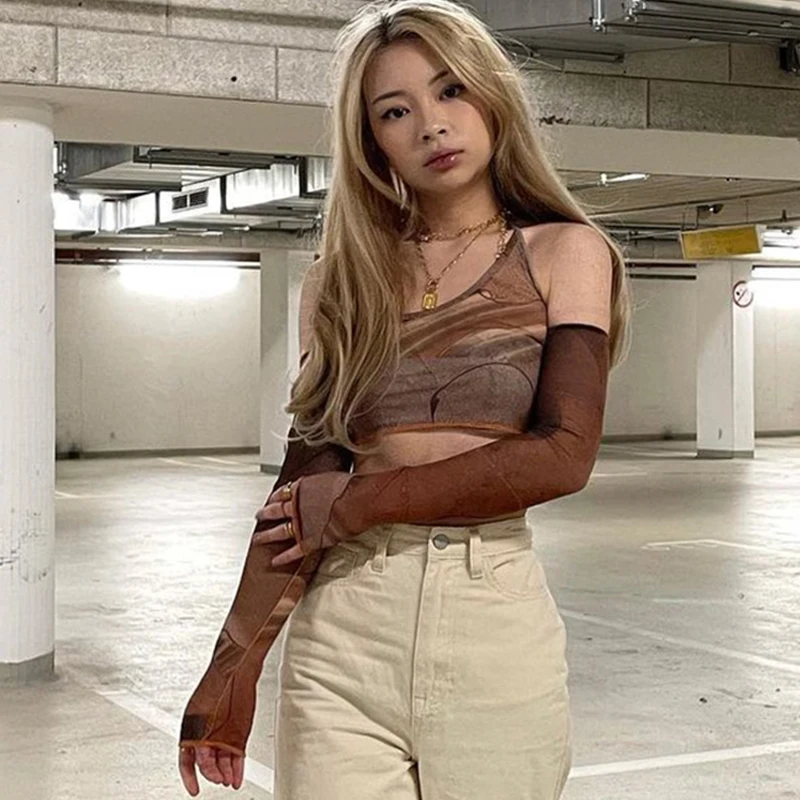 Y2k Коричневый корсет с готическим принтом, топы, винтажный кроп-топ, Футболка Harajuku, гранж с перчатками, модная футболка, женская летняя футболка, майка