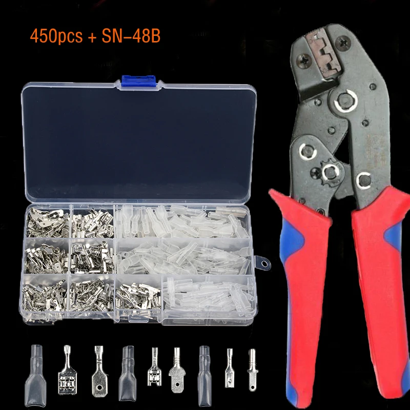 Универсальный пружинный штекер 2,84,86,3 мм, обжимной ручной инструмент, соединительные клеммы, Электрический изолированный ассортимент, стандартный