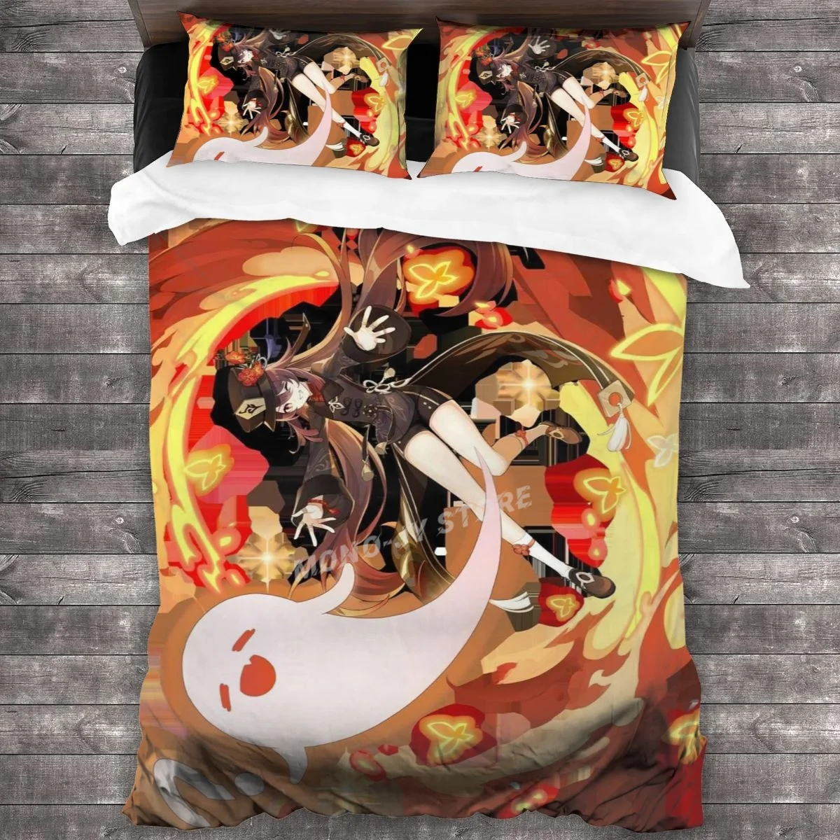 Комплект постельного белья Hu tao-ghost-Genshin, пододеяльник, наволочки, одеяло, Комплект постельного белья