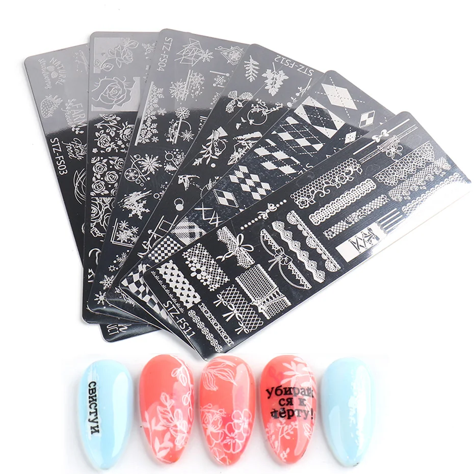 Штампованные пластины для ногтей, цветы, роза, лист, геометрический дизайн кружева, дизайн ногтей, печать, полировка, шаблоны, трафарет, маникюр, TRSTZFS01