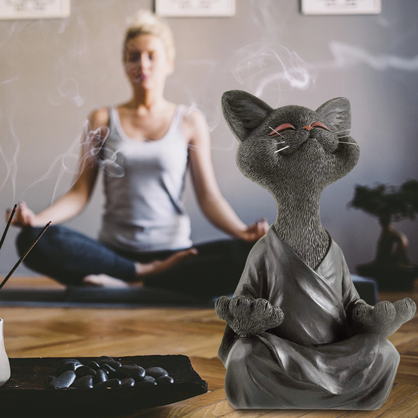 Медитация кошка Будда статуя дзен скульптура смола декор в Стиле Йоги статуя кота сад украшение статуи на открытом воздухе дома статуя-смола подарок новый