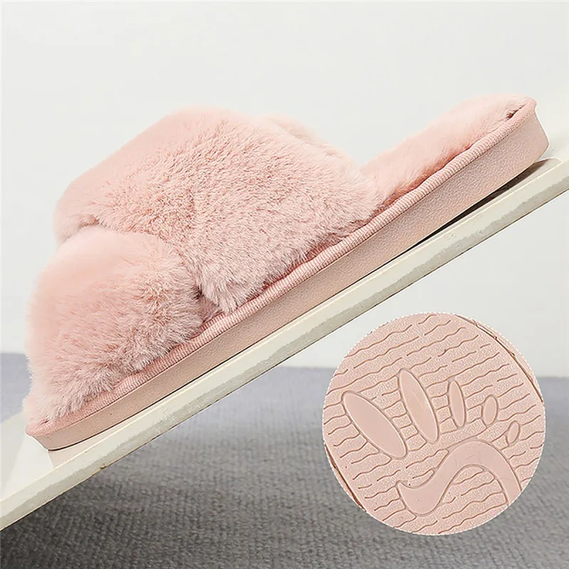 Зимние меховые тапочки с перекрестными ремешками, женская домашняя обувь, искусственный мех, теплые пушистые сандалии, женские домашние тапочки без шнуровки, женские сланцы