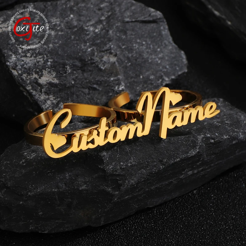 Goxijite индивидуальное двухпальцевое сварочное имя кольцо персонализированное любовь шрифт табличка Открытые Кольца для женщин из нержавеющей стали ювелирные изделия подарок