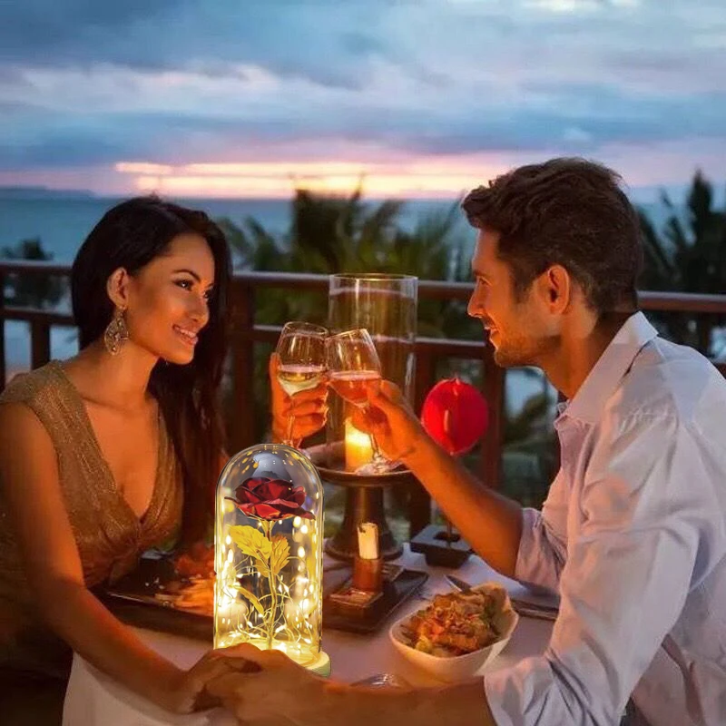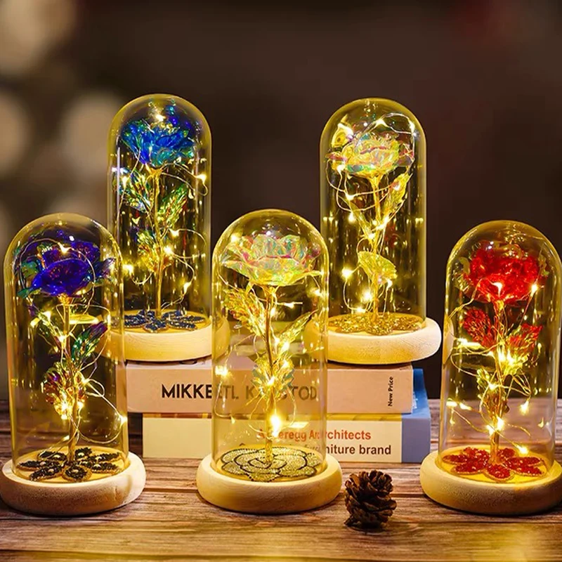2022 LED зачарованная галактика Роза вечный 24K золотой Фольга цветок с сказочной гирляндой в куполе для рождества День Святого Валентина подарок
