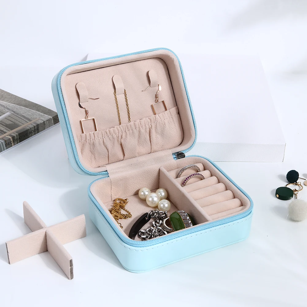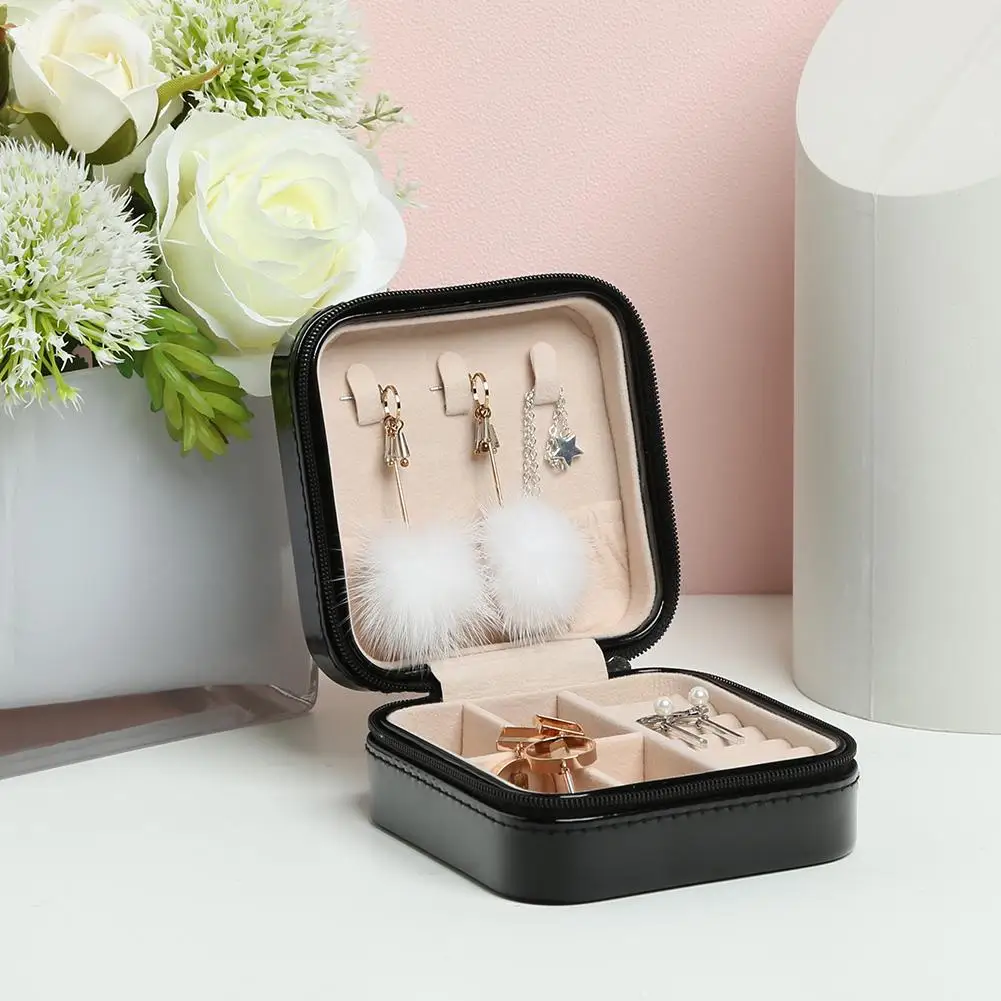 Портативный ящик для хранения ювелирных изделий, серьги, кольца, чехол, органайзер, держатель для дисплея, браслет, ожерелье, контейнер из искусственной кожи