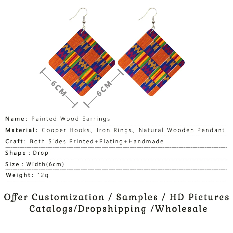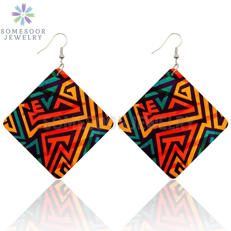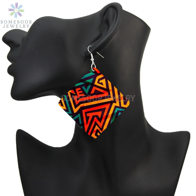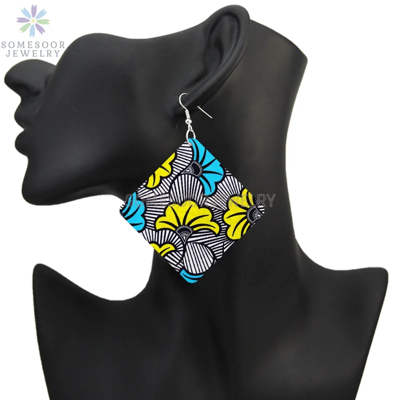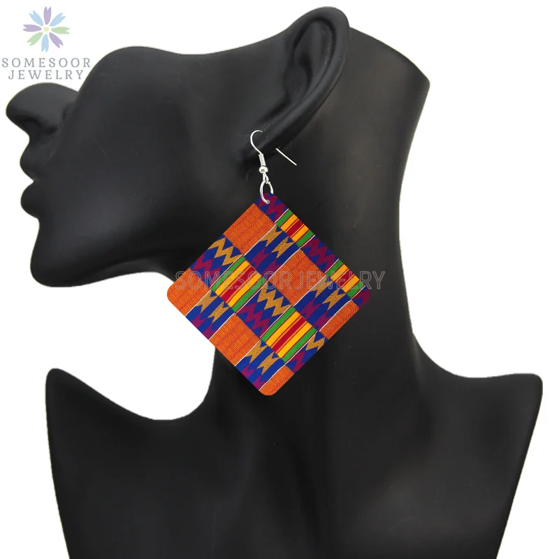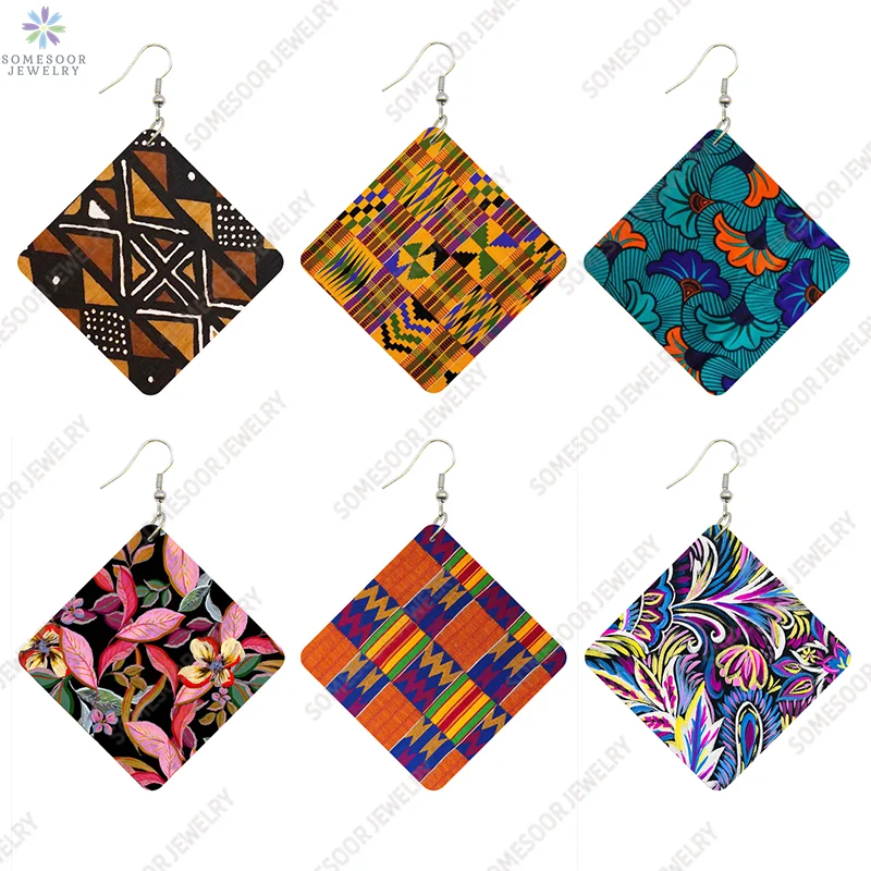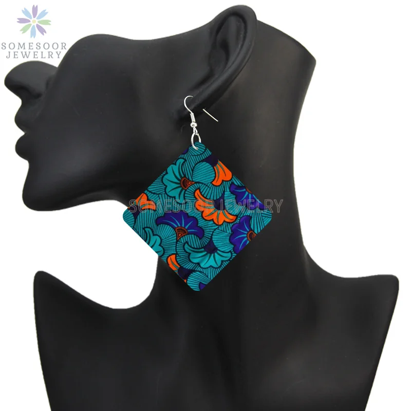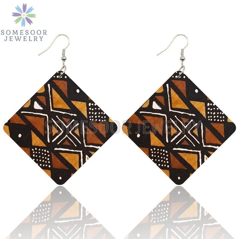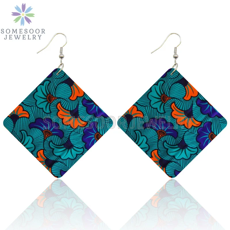Геометрические деревянные висячие серьги SOMESOOR с Африканской тканью, богемные этнические квадратные деревянные висячие украшения для женщин, подарки