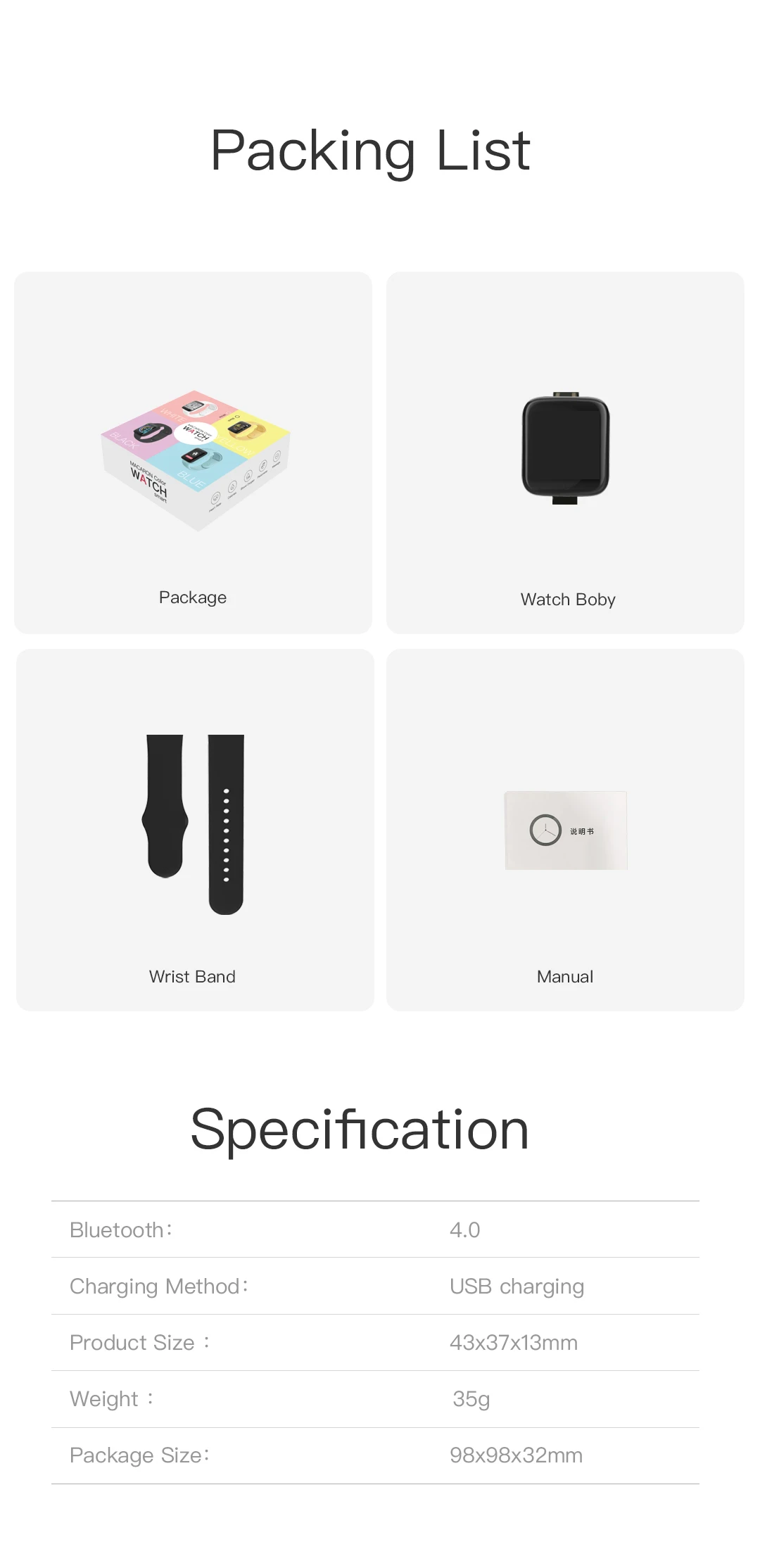 【Функциональность: Настройка циферблата, шаги, расстояние, калории, мониторинг сна, напоминание о сидячем положении, пульс, кровяное давление, кислород, мультиспортивный режим (бег, пропуск, Sit-ups), сообщения, напоминания (QQ,Wechat,Facebook,WhatsAPP,Line,Twitter,Instagram), напоминания о звонках, sms-уведомления, будильник, фотосъемка смайликов, поиск браслета, ищу телефон, поверните запястье и блестящий экран【Watch Languages】: английский, упрощенный китайский, голландский, русский, французский, немецкий, Португалия, Испания, Турция, Польша, Малайзия, Чехия, Словакия