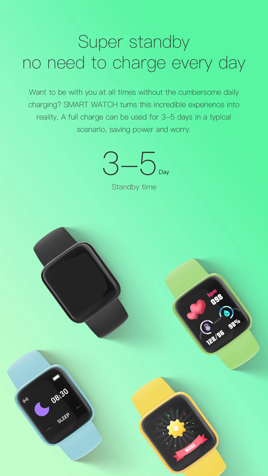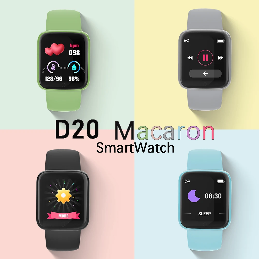 Смарт-часы D20 Macaron 2021 с USB-зарядкой, пульсометром и тонометром