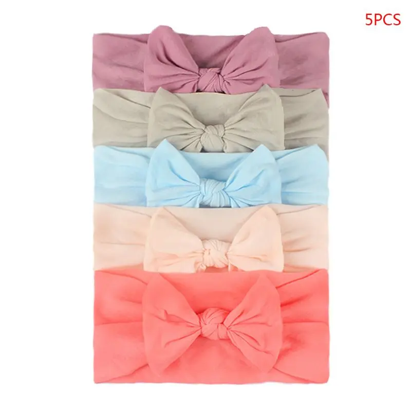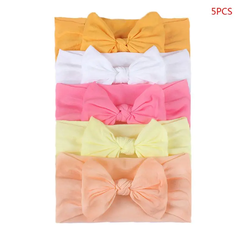 5 шт., широкая нейлоновая головная повязка для новорожденных с бант...