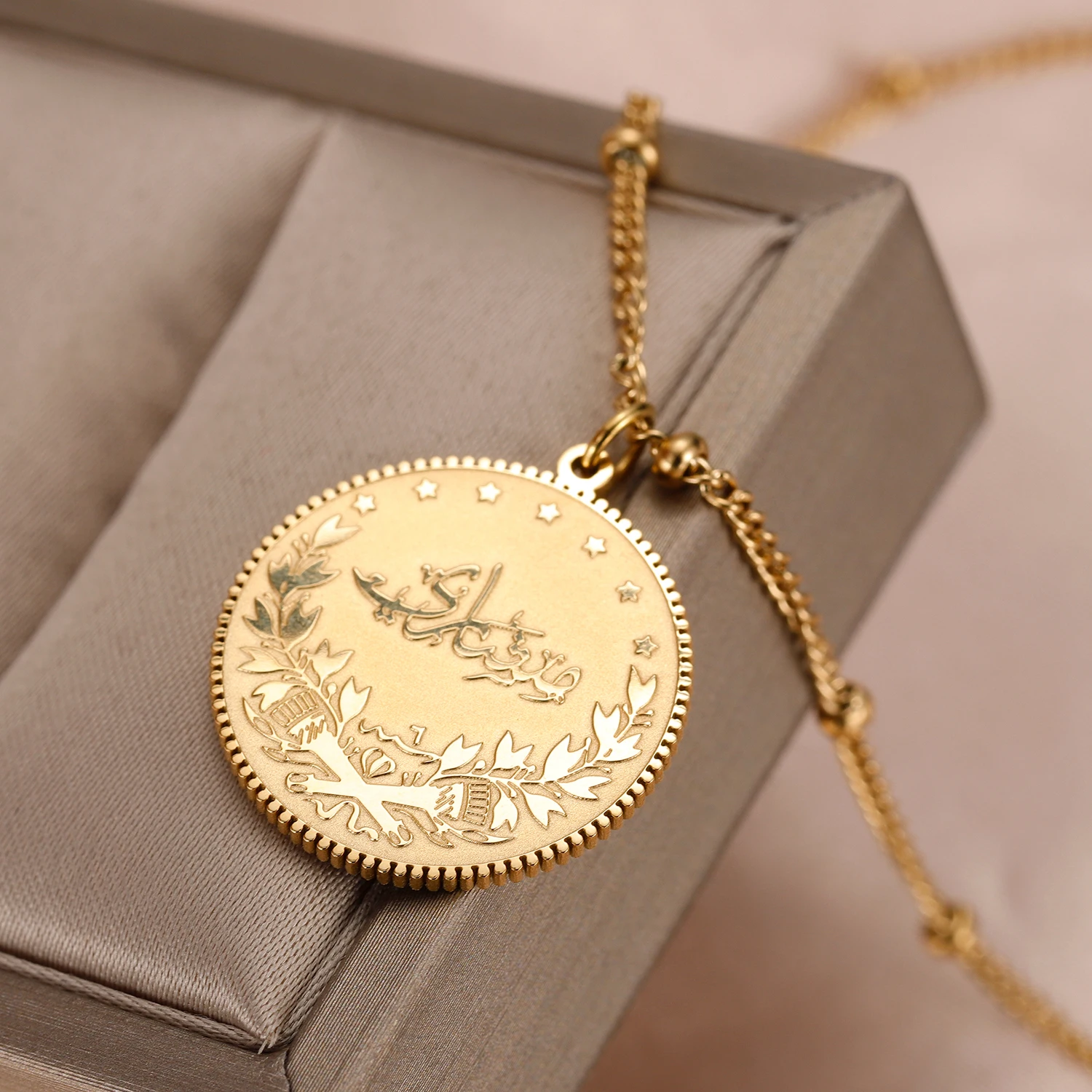 Мусульманское ожерелье с подвеской, Арабская монета, на заказ, позолоченная тарелка 18 карат, Арабская цепочка с подвеской, Турция, ислам, Аллах, ювелирные изделия для женщин и мужчин